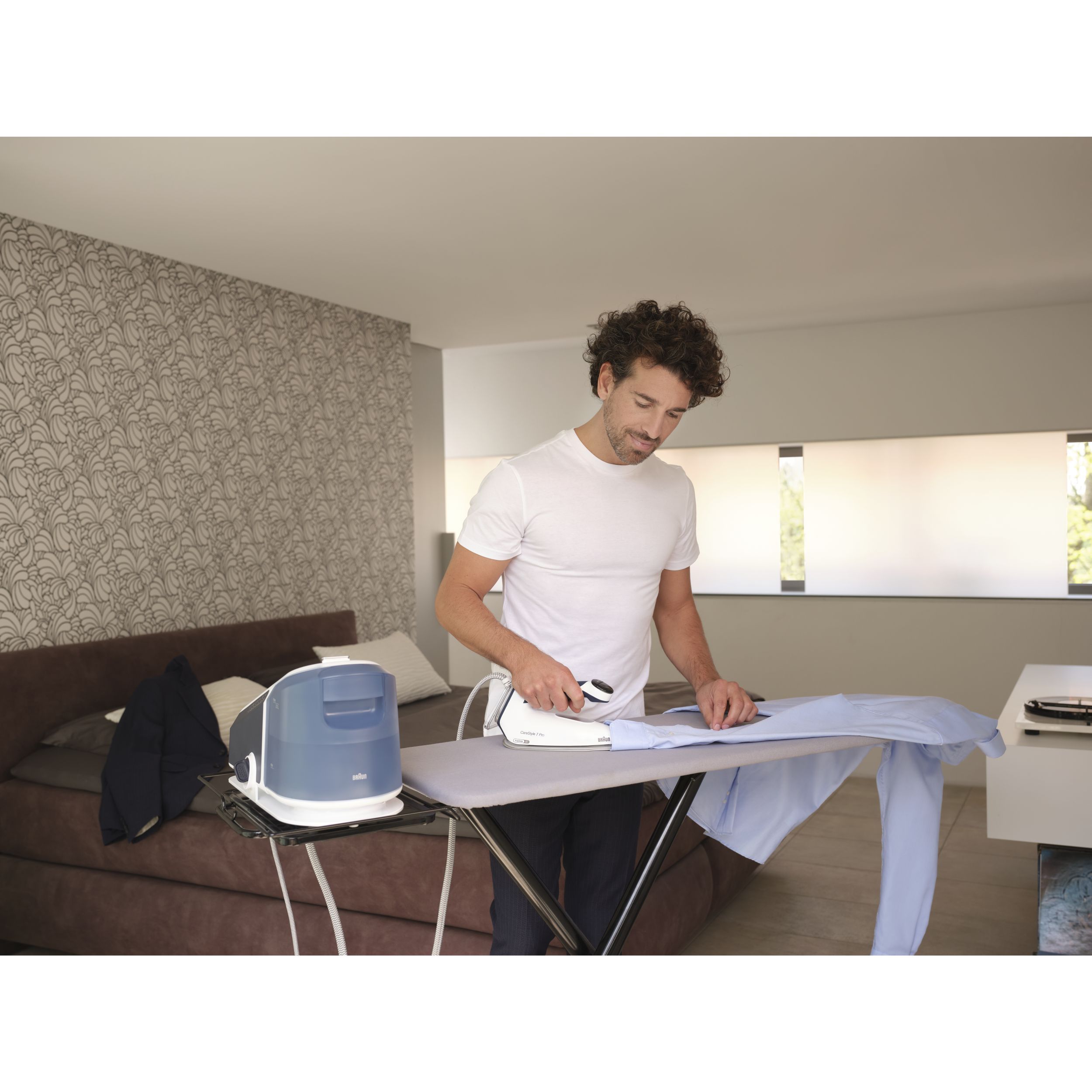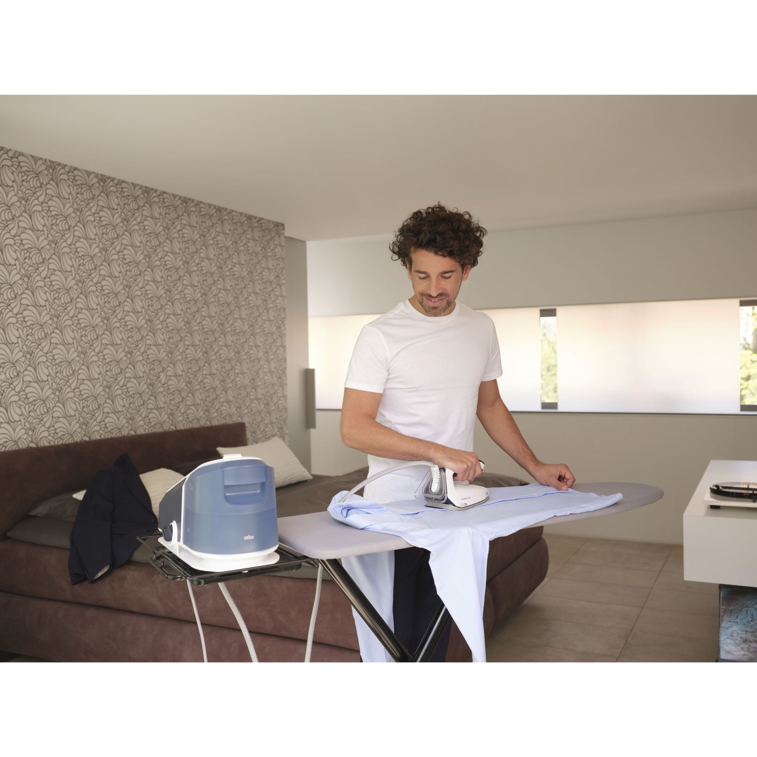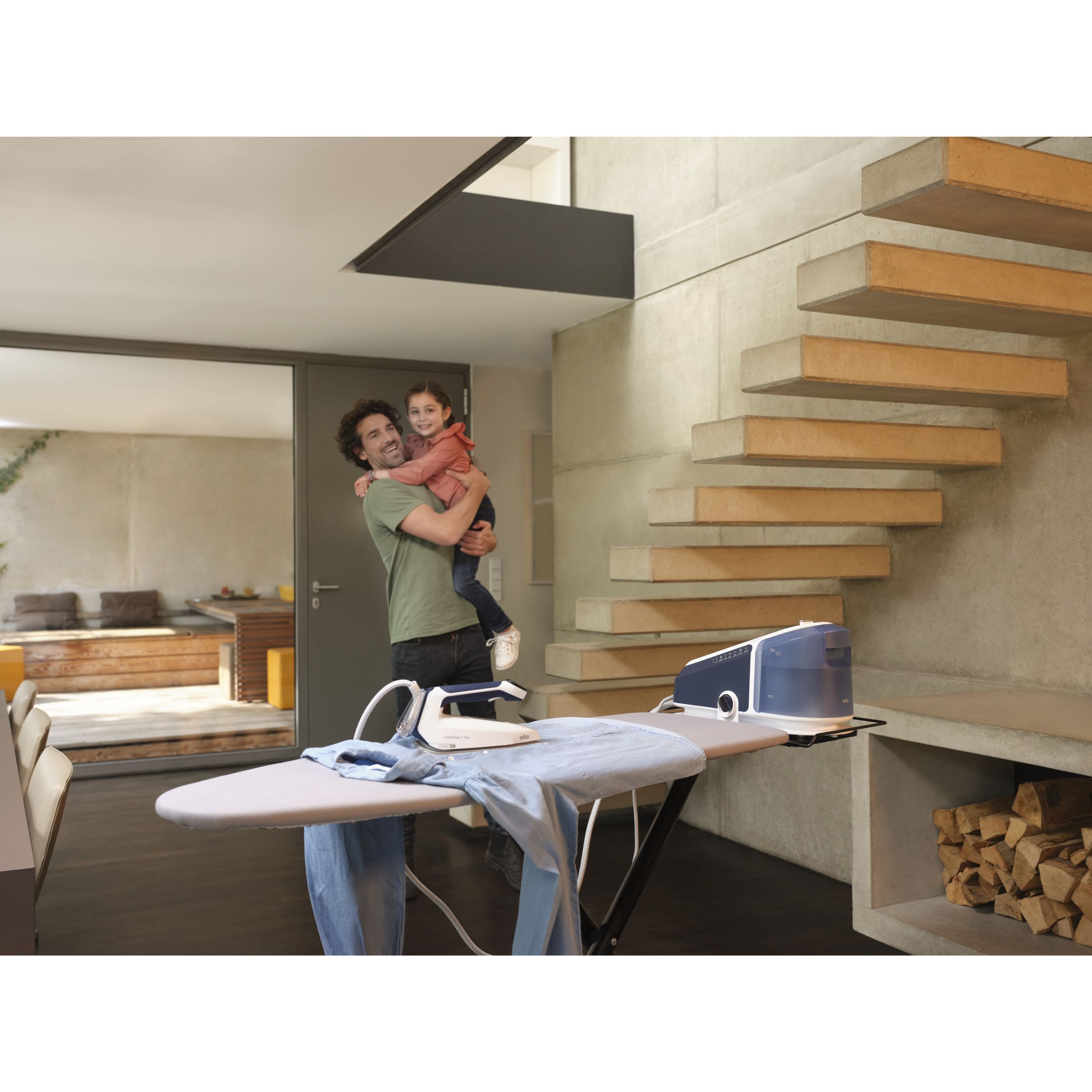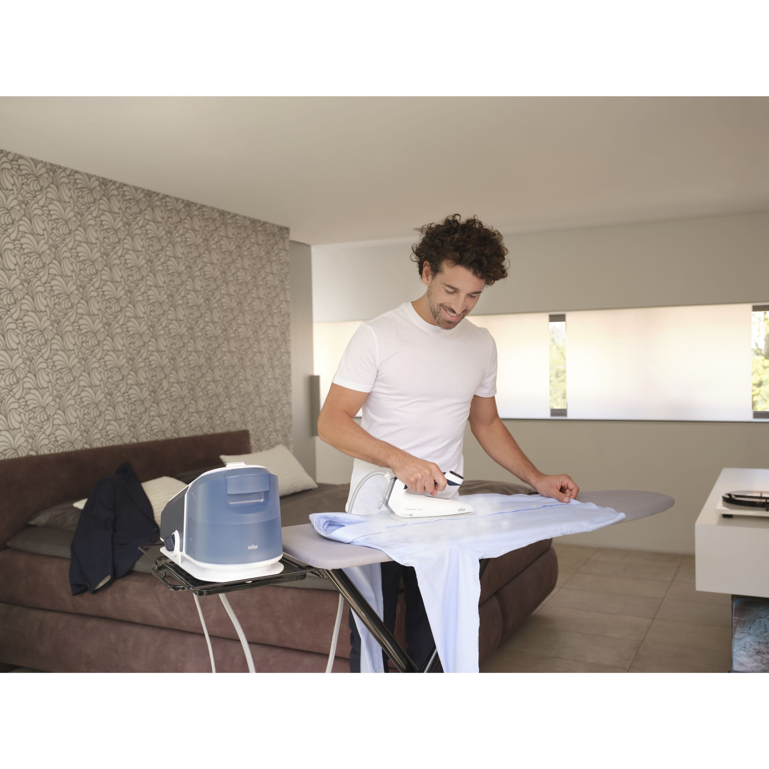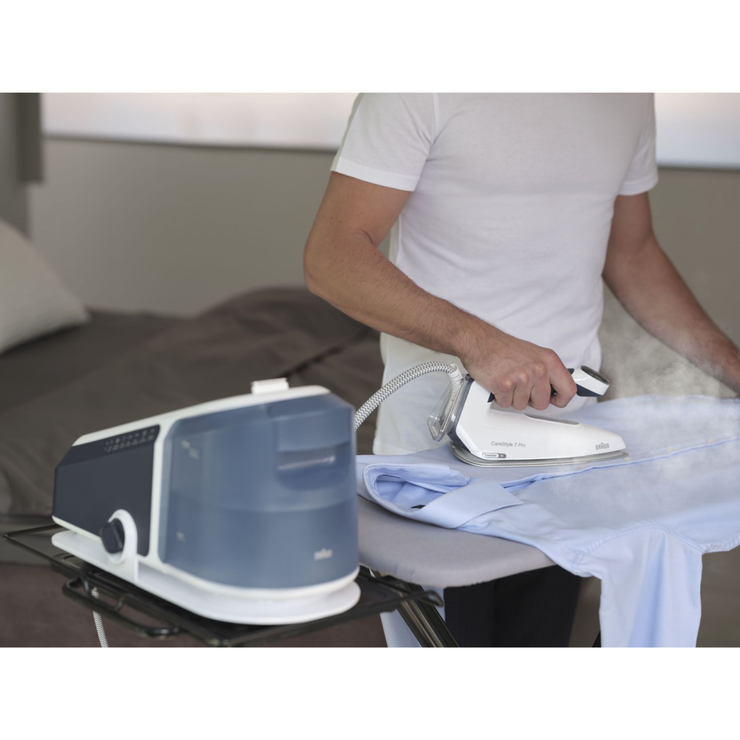 Călcat vertical - Datorită aburului său puternic continuu,călcatul vertical cu abur al perdelelor și al hainelor agățate este foarte simplu.