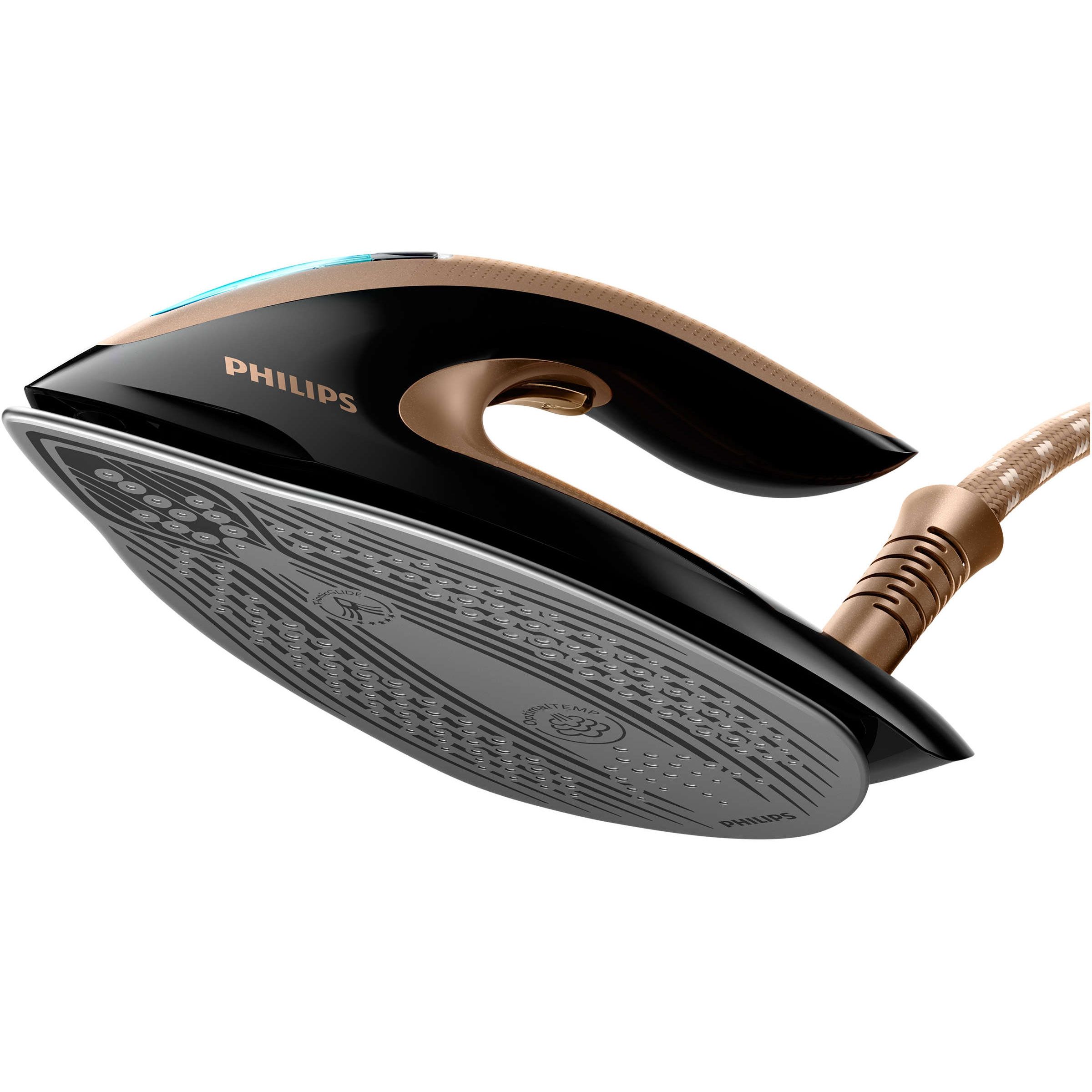 Tehnologie OptimalTEMP, nu necesită setarea temperaturii. Calcă orice material, de la blugi la mătase, fără a regla temperatura. Graţie tehnologiei OptimalTEMP, nu este necesar un buton sau reglaje. Aşa că nu mai este nevoie să sortezi rufele în prealabil sau să aştepţi ca fierul să se încălzească şi să se răcească. Eşti pregătit să calci orice material, oricând.