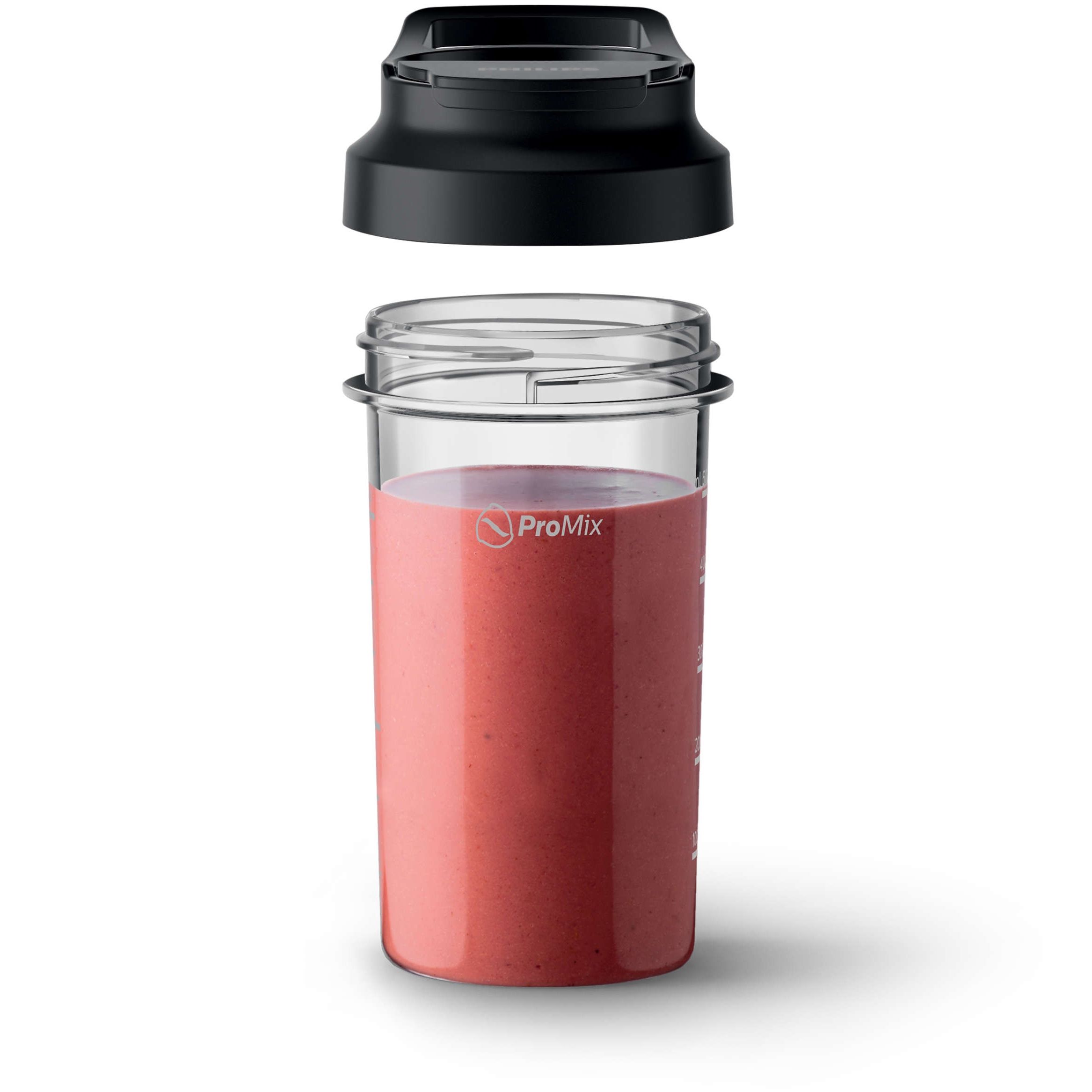 Ia cu tine smoothie-uri sănătoase în recipientul on-the-go. Pentru a-ţi face viaţa mai uşoară, amestecă smoothie-urile preferate direct în recipientul on-the-go Philips. Doar amestecă, închide şi poţi pleca. Fabricat din materiale fără BPA, blenderul include o garnitură anti-scurgeri, pentru a-l putea lua cu tine în siguranţă, fără a vărsa nimic.
