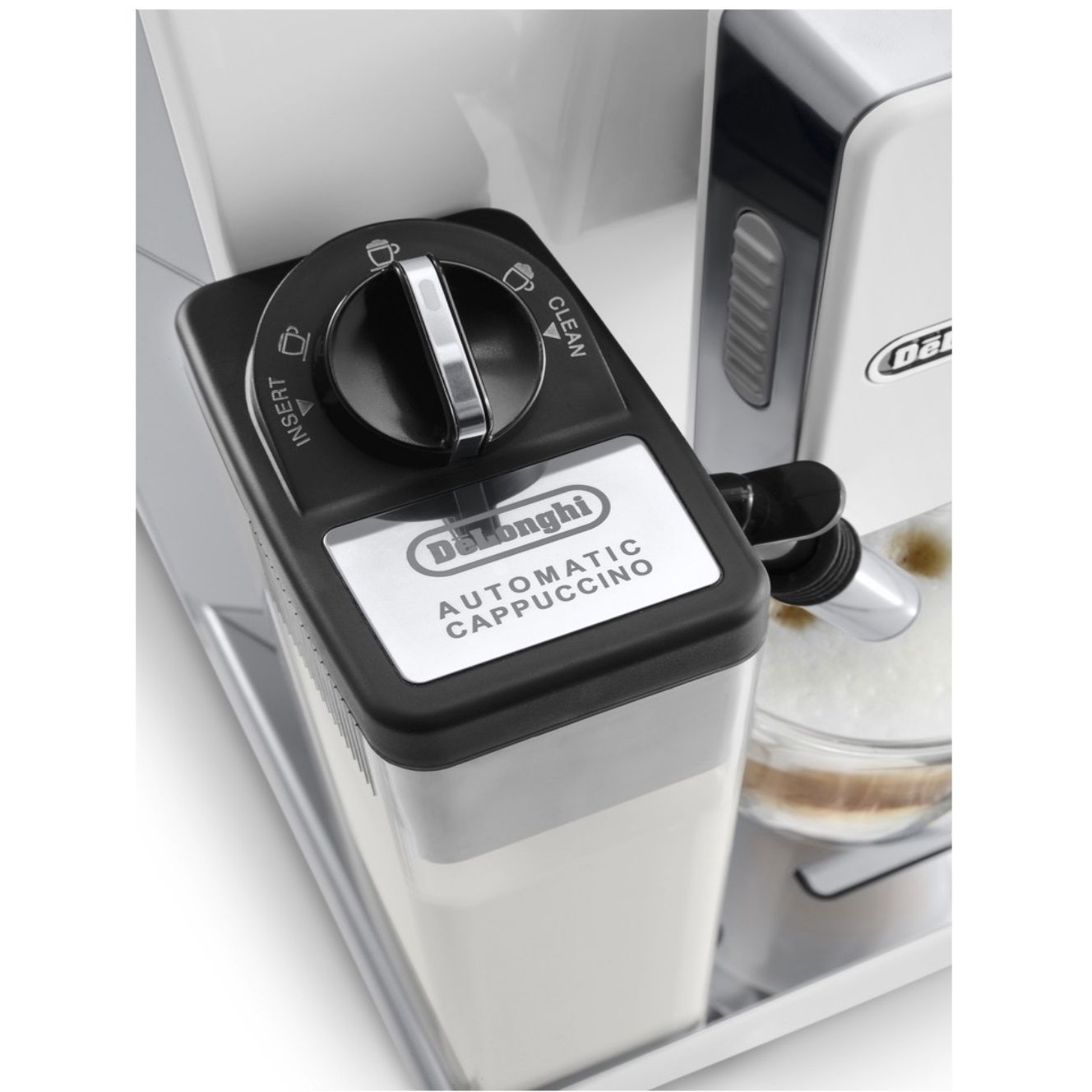 Pentru a garanta igiena impecabilă, carafă are un sitem integrat de curățare: activați funcția după prepararea laptelui și toate componentele care au intrat în contact cu laptele vor fi curățate cu apă fierbinte și abur. Curățarea espressorului, în special după prepararea băuturilor pe bază de lapte, este esențială. De aceea, carafa LatteCrema este echipată cu un sistem automat de curățare: rotește butonul pe funcția CLEAN (CURĂȚARE), iar espressorul va curăța automat cu abur și apă fierbinte întreg circuitul ce a intrat în contact cu laptele.