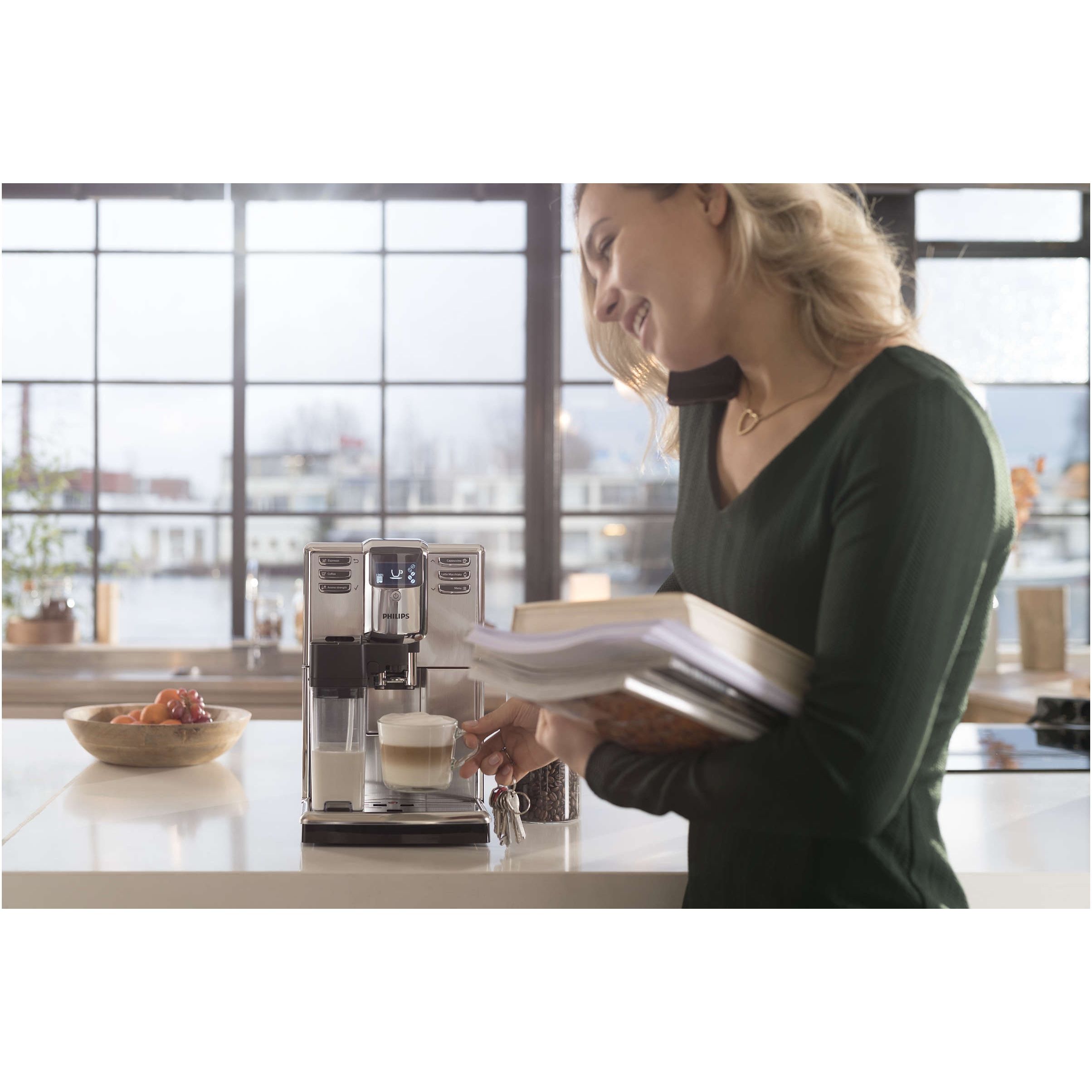 Savurează 5 băuturi uşor de obţinut, inclusiv latte machiato. Savurează o varietate mare de băuturi adecvate oricărei ocazii. Indiferent dacă tânjeşti după un espresso, o cafea sau o reţetă pe bază de lapte, espressorul automat oferă un preparat perfect, fără complicaţii şi fără întârziere!