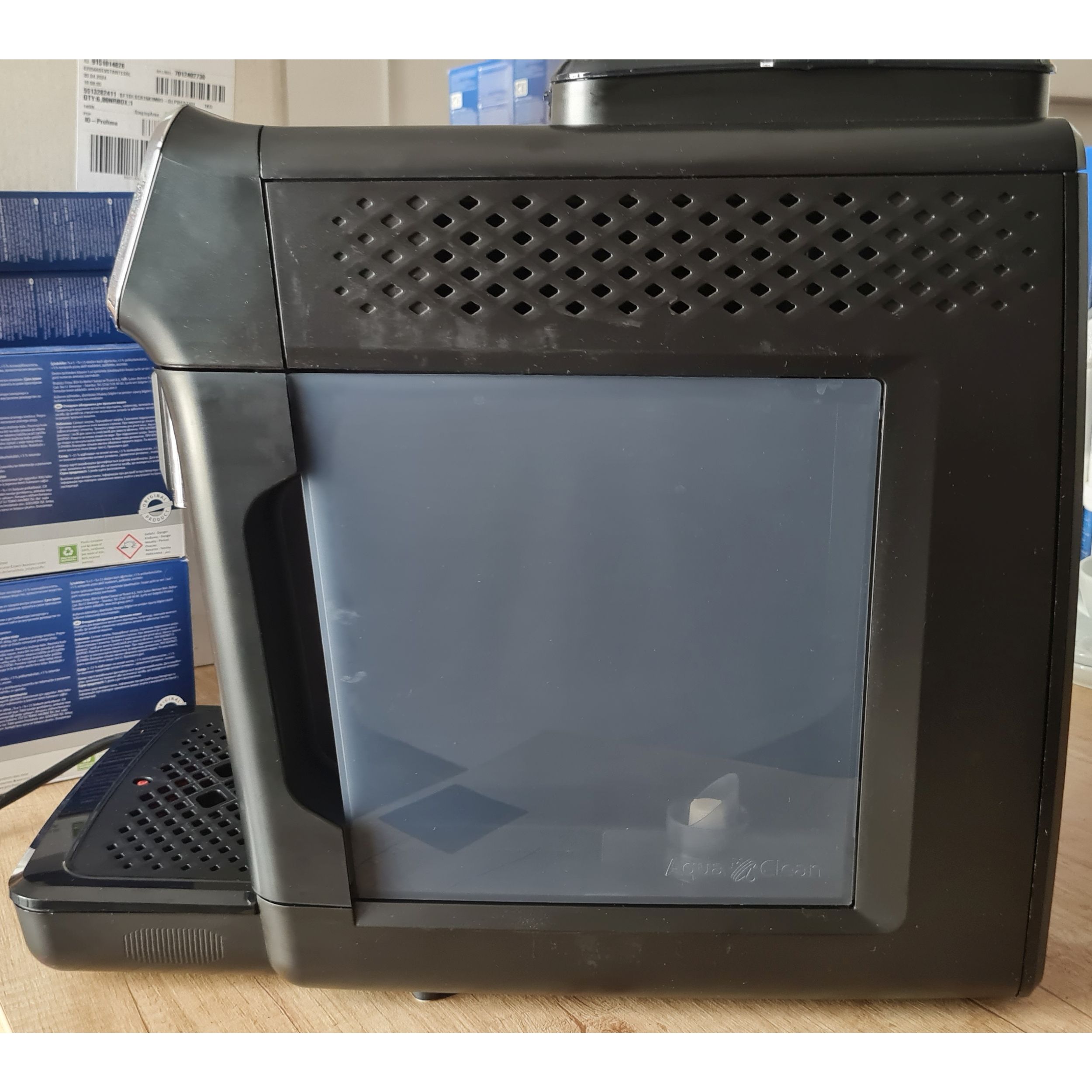 Până la 5000 de ceşti* fără detartrare graţie AquaClean. Inovaţia noastră brevetată, filtrul de apă AquaClean, garantează că vei profita la maximum de espressorul tău complet automat. Prin schimbarea filtrului la solicitarea aparatului, nu va trebui să-ţi detartrezi aparatul timp de până la 5.000* de ceşti, beneficiind de apă curată şi purificată. După instalarea filtrului AquaClean în espressor, alarma de notificare pentru detartrare se dezactivează automat.