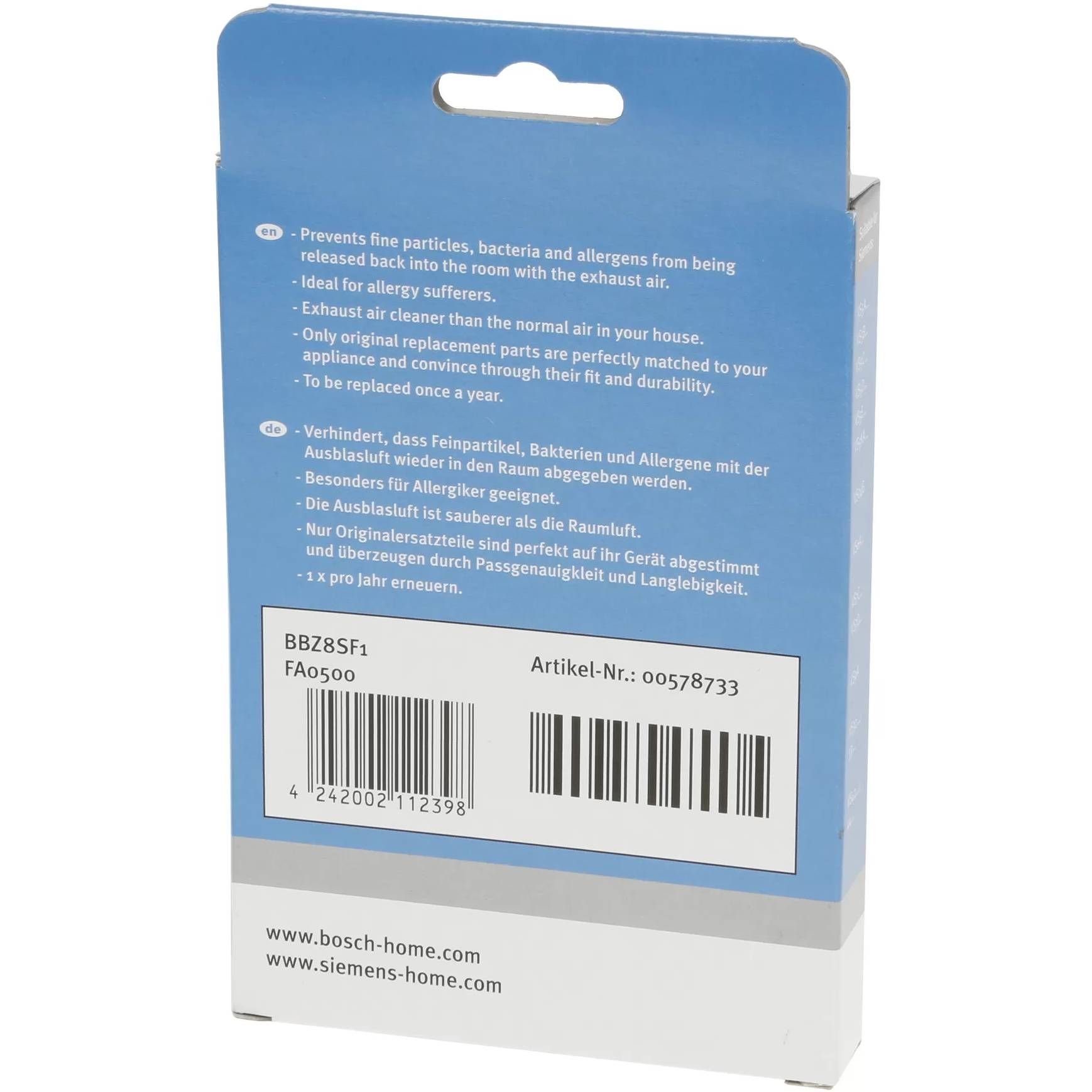 Resigilat Filtru igienic HEPA de înaltă performanță BOSCH BBZ8SF1 - 00578733, Recomandat persoanelor care suferă de alergii, Lavabil, Previne eliberarea de particule mici, bacterii sau alergeni în aerul evacuat (ID 7354)