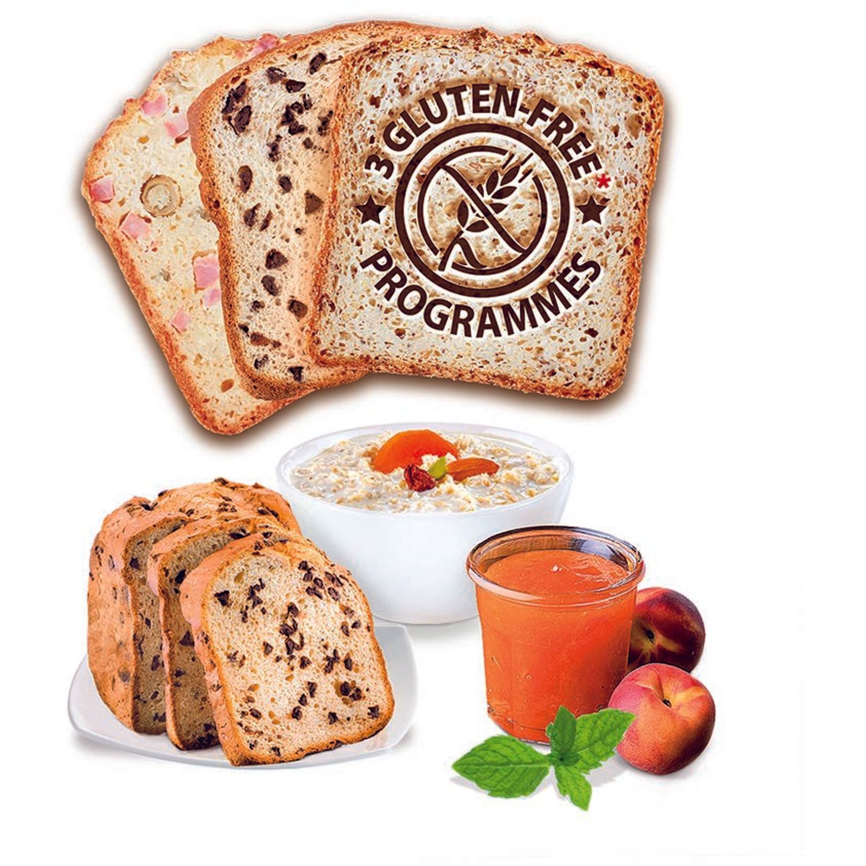 Cele 3 programe fără gluten vă permit să coaceți pâini și prăjituri utilizând o gamă largă de premixuri de pâine fără gluten și făină. Dându-vă confortul de a avea pâine proaspăt coaptă, care este adaptată în mod special la gusturile și nevoile dumneavoastră.