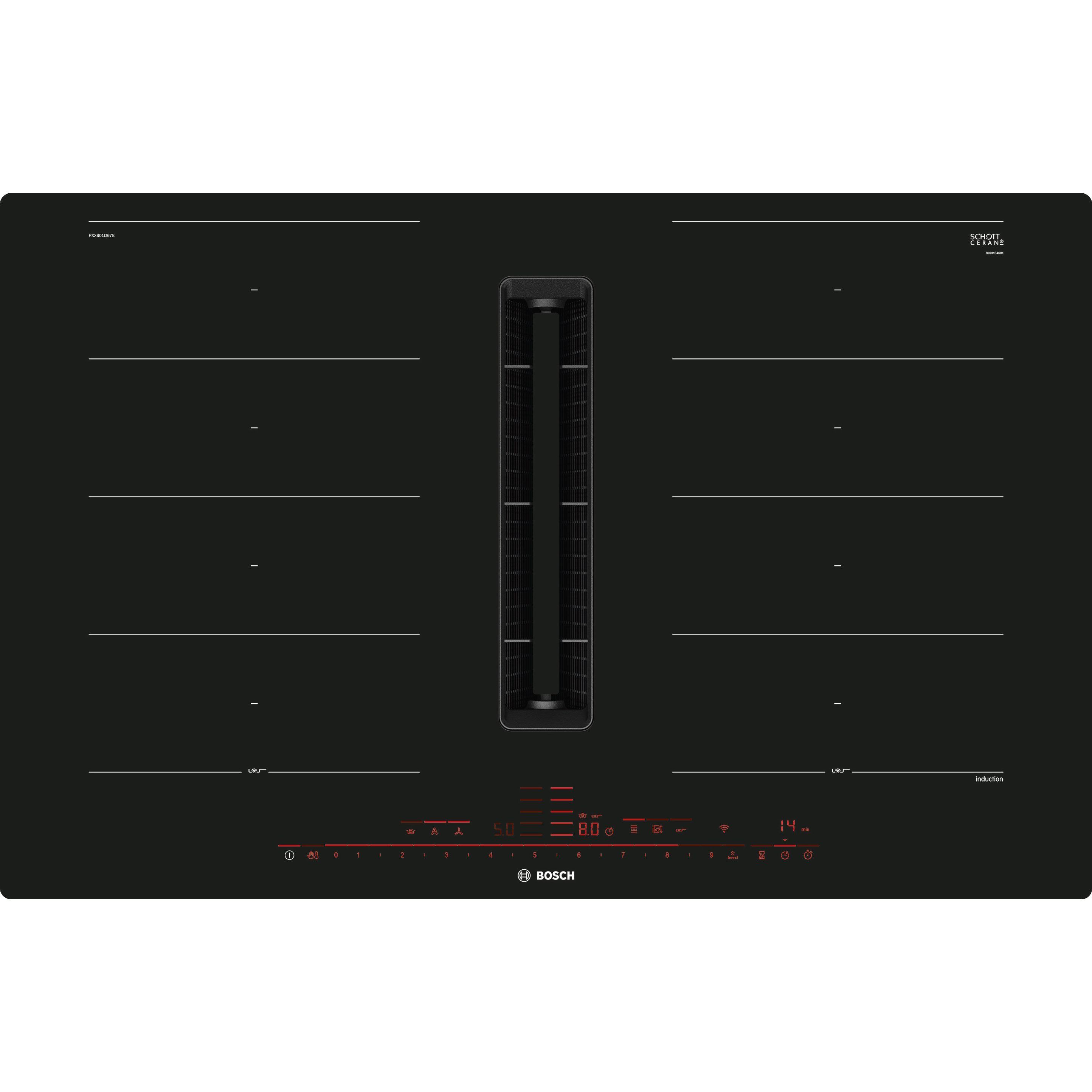 Această plită pe inducție cu hotă integrată combină în mod ideal cele două funcționalități pentru confort maxim în utilizare și libertate în designul bucătăriei.