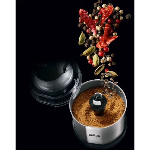 Accesoriul râșniță de cafea și condimente MQ60 vă permite să râșniți toate tipurile de condimente, boabe sau semințe, transformându-le rapid în pulbere, cu ajutorul unui accesoriu din metal, ușor de curățat. Vasul din oțel inoxidabil nu absoarbe mirosurile neplăcute, astfel încât seara puteți măcina ardei iute uscat pentru a prepara curry, iar dimineața boabe de cafea, fără a vă îngrijora că aromele acestora se vor combina.