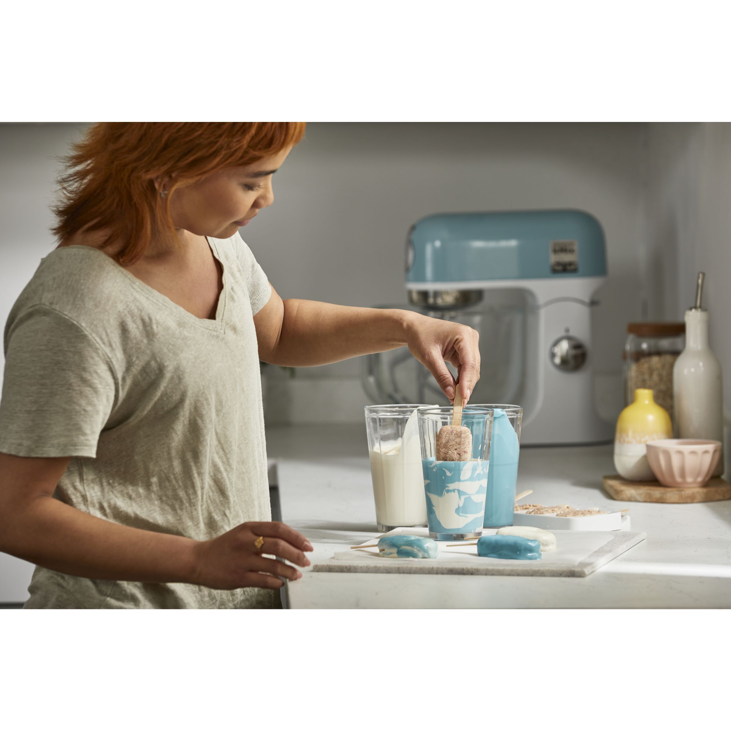 Disponibilă în variantele roz și albastru pastel, această gamă kMix Edition este perfectă pentru cei care doresc să adauge puțină culoare în bucătăria lor. Puternică și stilată, cu siguranță va fi un subiect de discuție. Indiferent dacă sunteți din„echipa roz” sau din „echipa albastră”, sunteți pe mâini sigure atunci când gătiți toate bunătățile preferate.