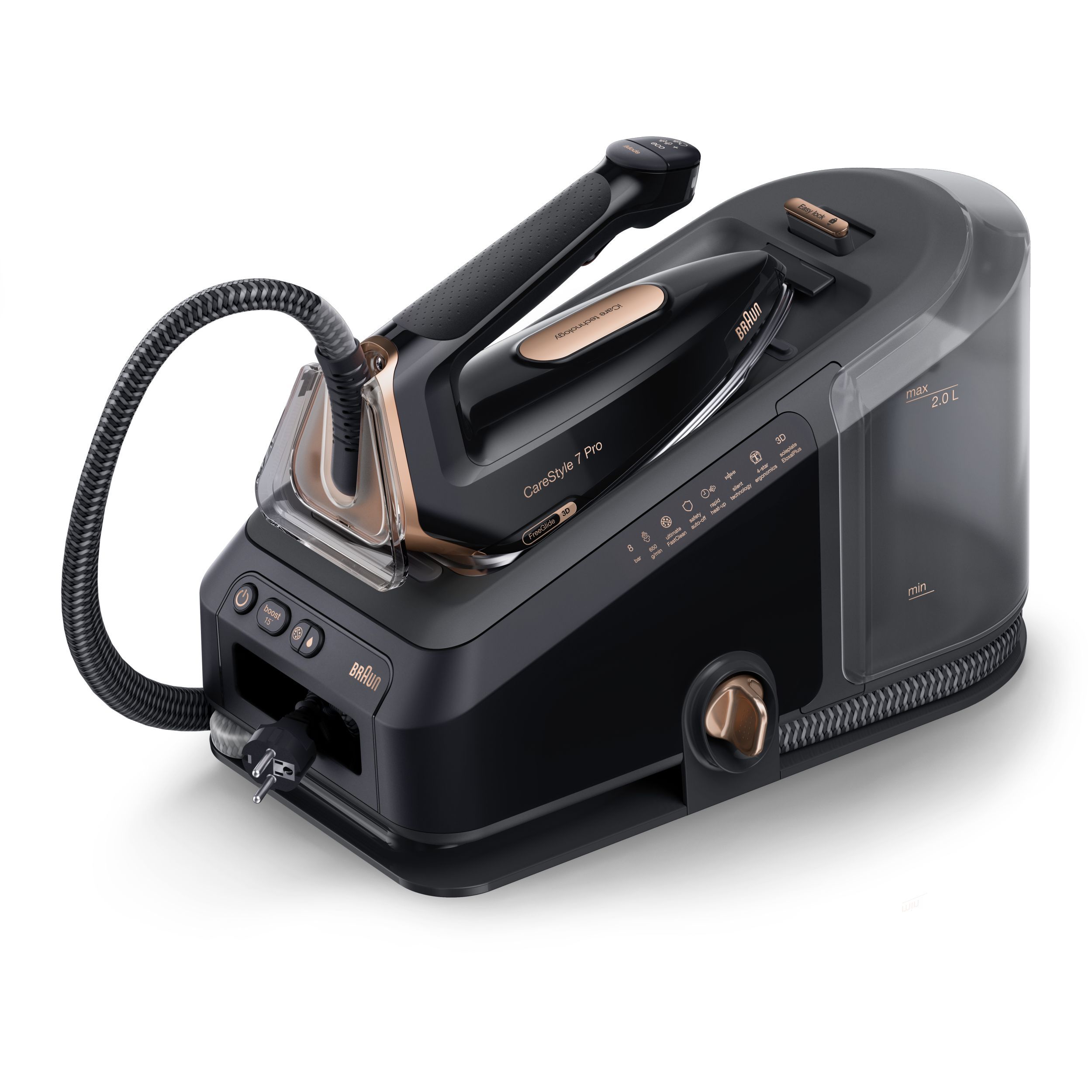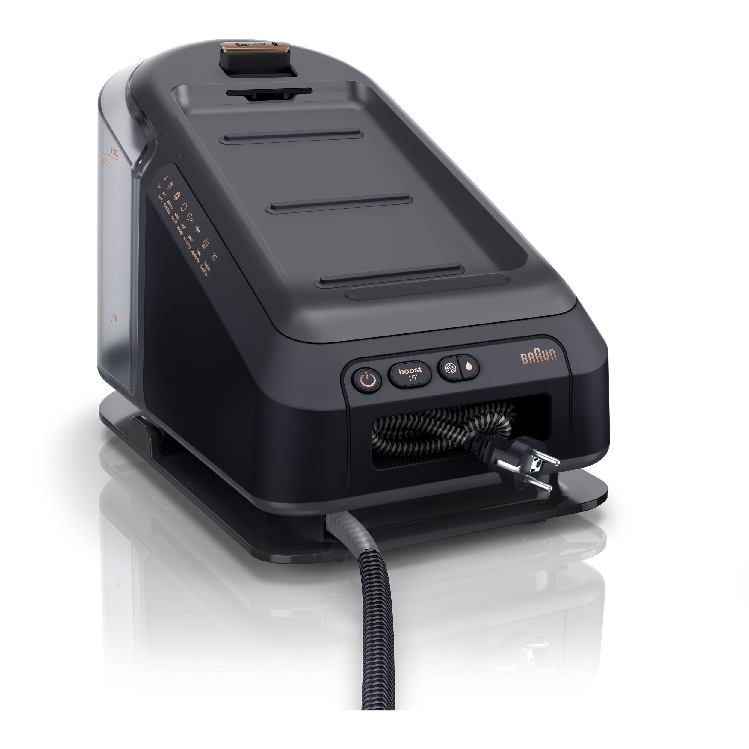 Rezervor de apă foarte mare, de 2 l - Ușor de reîncărcat,de transportat și de depozitat. Mai puține întreruperi pentru reumplere,ceea ce face călcatul mai rapid.