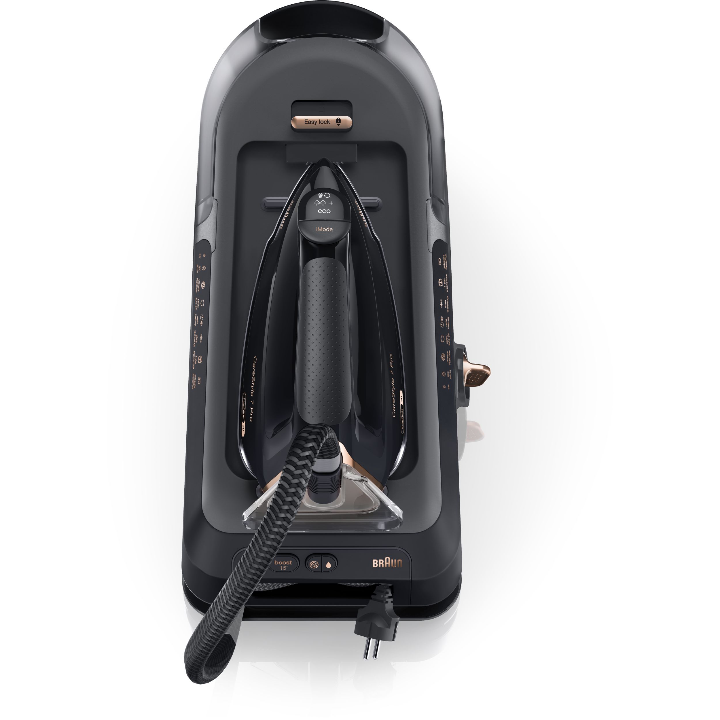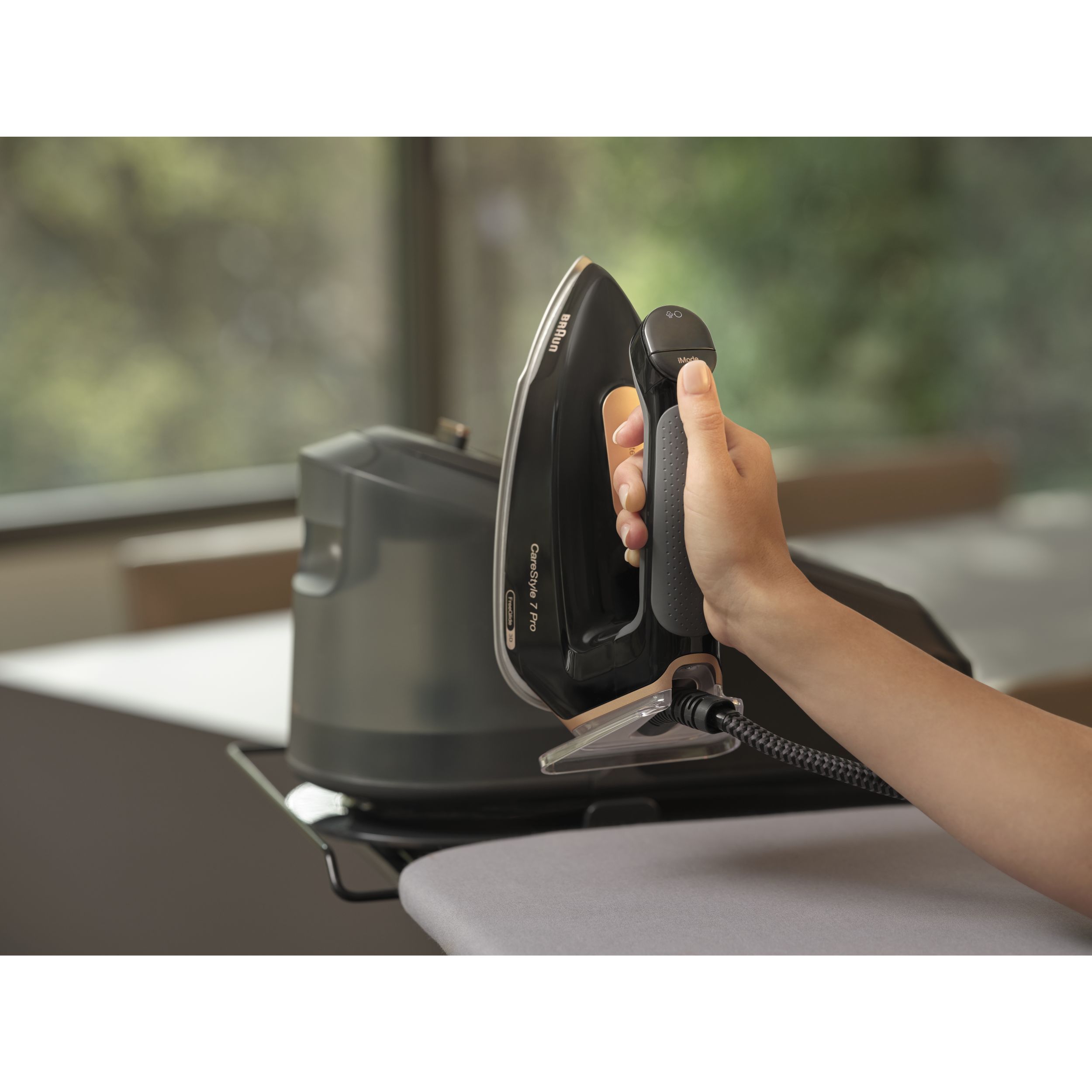 Interfață iMode - Selectați dintre cele 4 moduri prin simpla apăsare a unui buton în timp ce călcați, fără întreruperi - nu trebuie să lăsați fierul de călcat jos pentru a schimba setarea.
