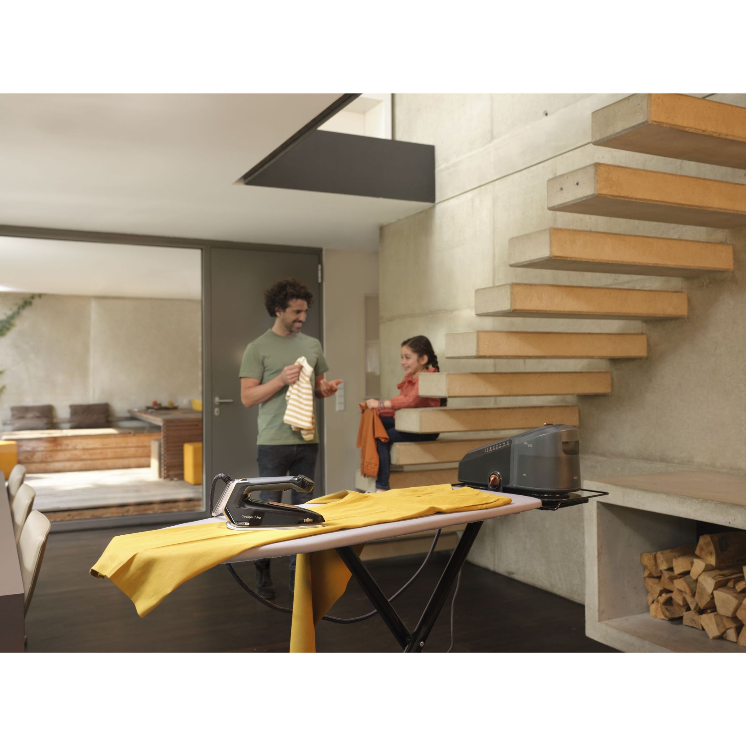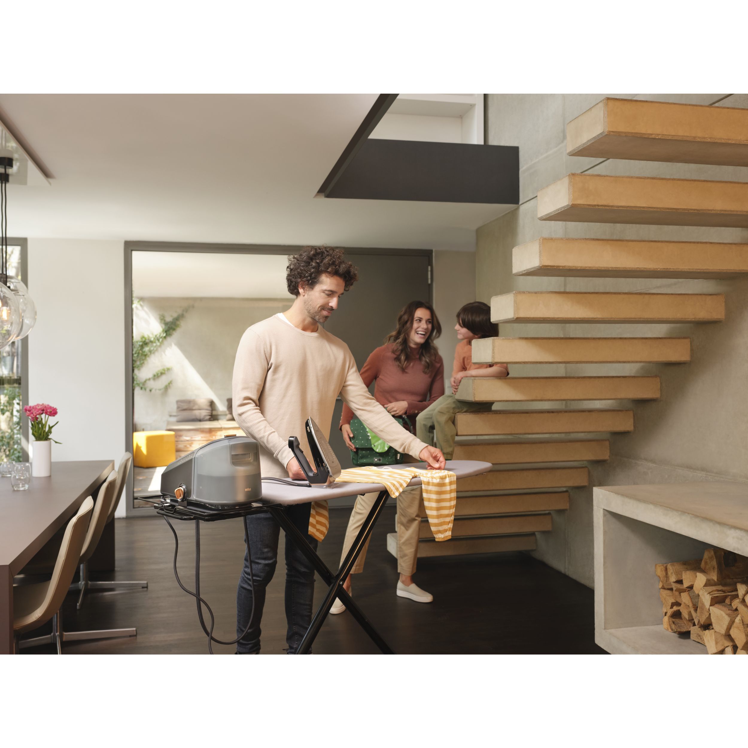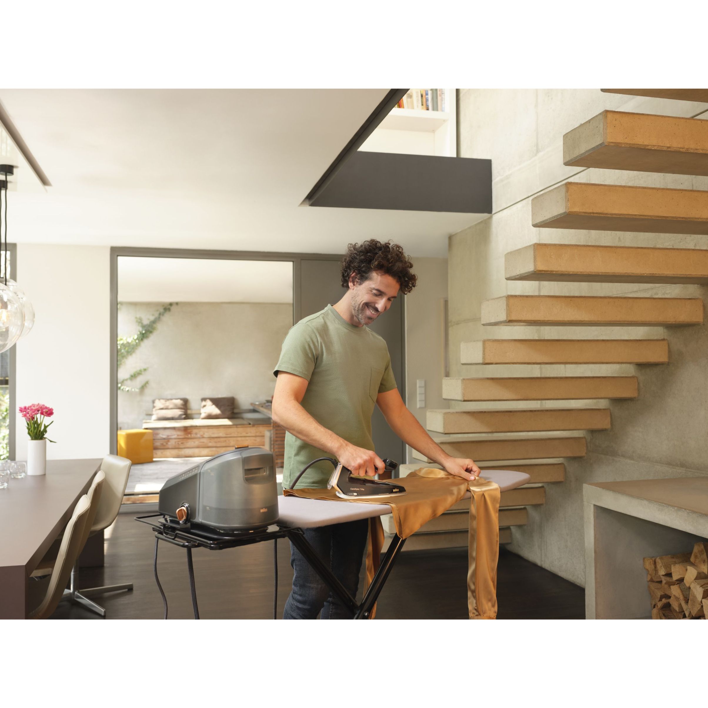Călcat vertical - Datorită aburului său puternic continuu,călcatul vertical cu abur al perdelelor și al hainelor agățate este foarte simplu.