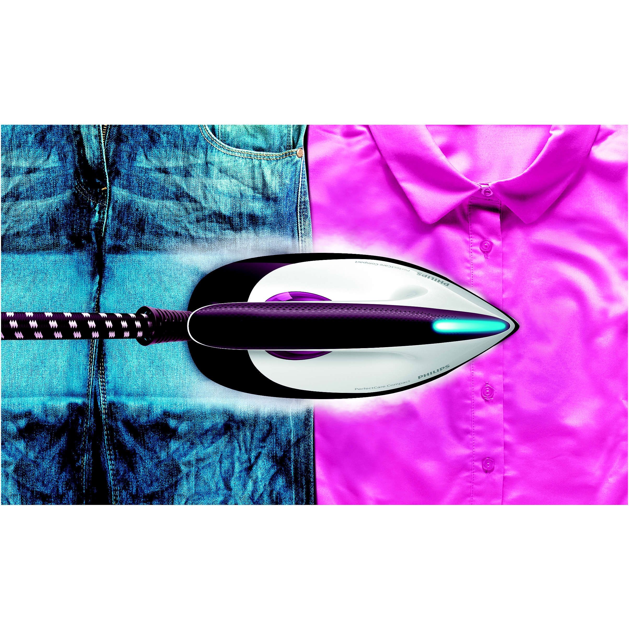 Calcă de la blugi la mătase, fără să modifici setarea de temperatură. Cu tehnologia OptimalTEMP, nu vei mai irosi timpul schimbând setările de temperatură, aşteptând reglarea temperaturii sau sortând în prealabil articolele vestimentare. Poţi călca materiale de la blugi la mătase, garantat fără arsuri, mulţumită combinaţiei perfecte dintre temperatură şi aburul puternic continuu.