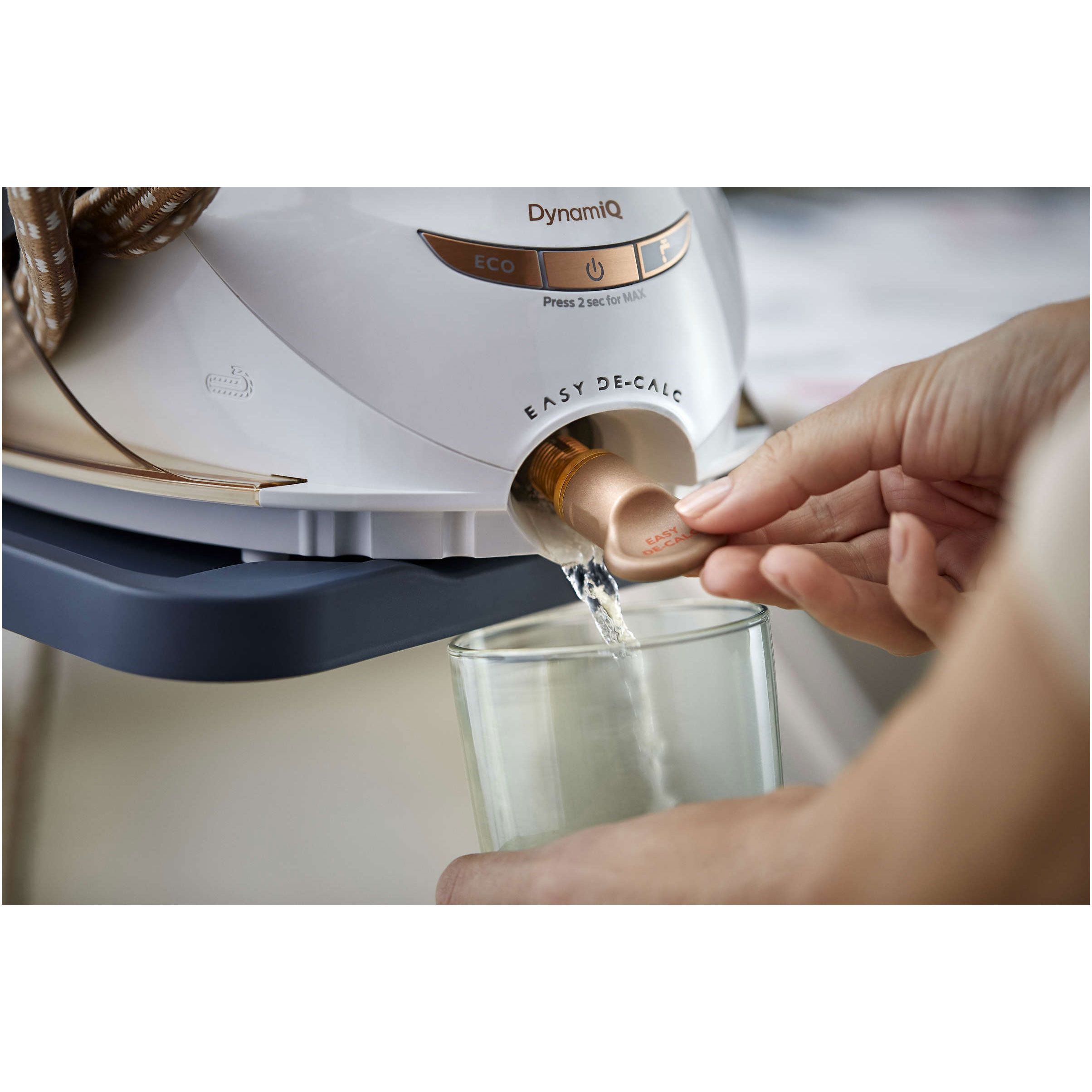 Sistem uşor şi eficient de decalcifiere pentru performanţă de durată. Detartrarea regulată îţi protejează fierul, îi prelungeşte durata de viaţă şi asigură cele mai bune performanţe ale aburului. Sistemul Easy De-Calc Plus colectează calcarul continuu, iar un indicator luminos şi un semnal sonor te anunţă când recipientul trebuie golit. Scoate doar dopul şi goleşte apa şi particulele de calcar.