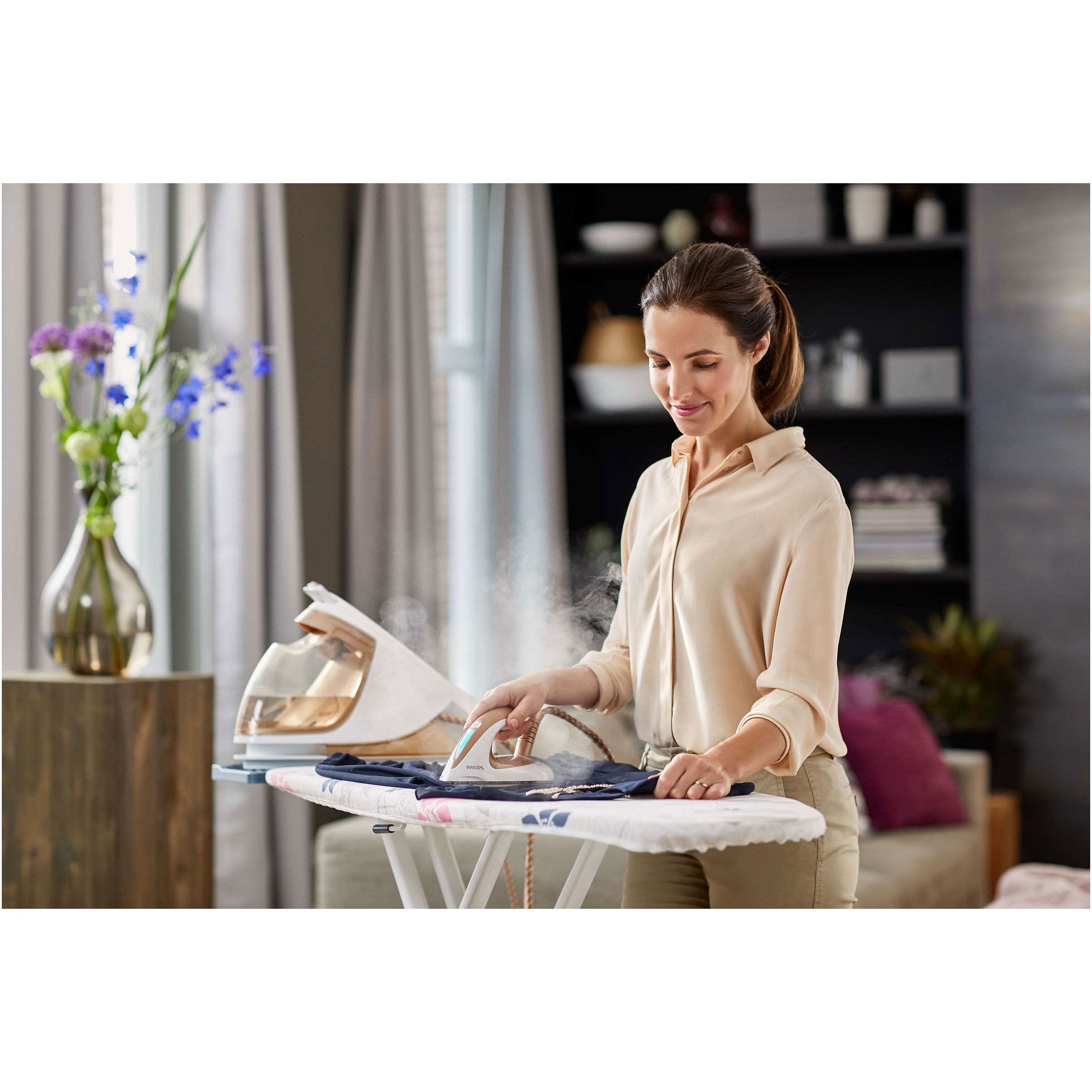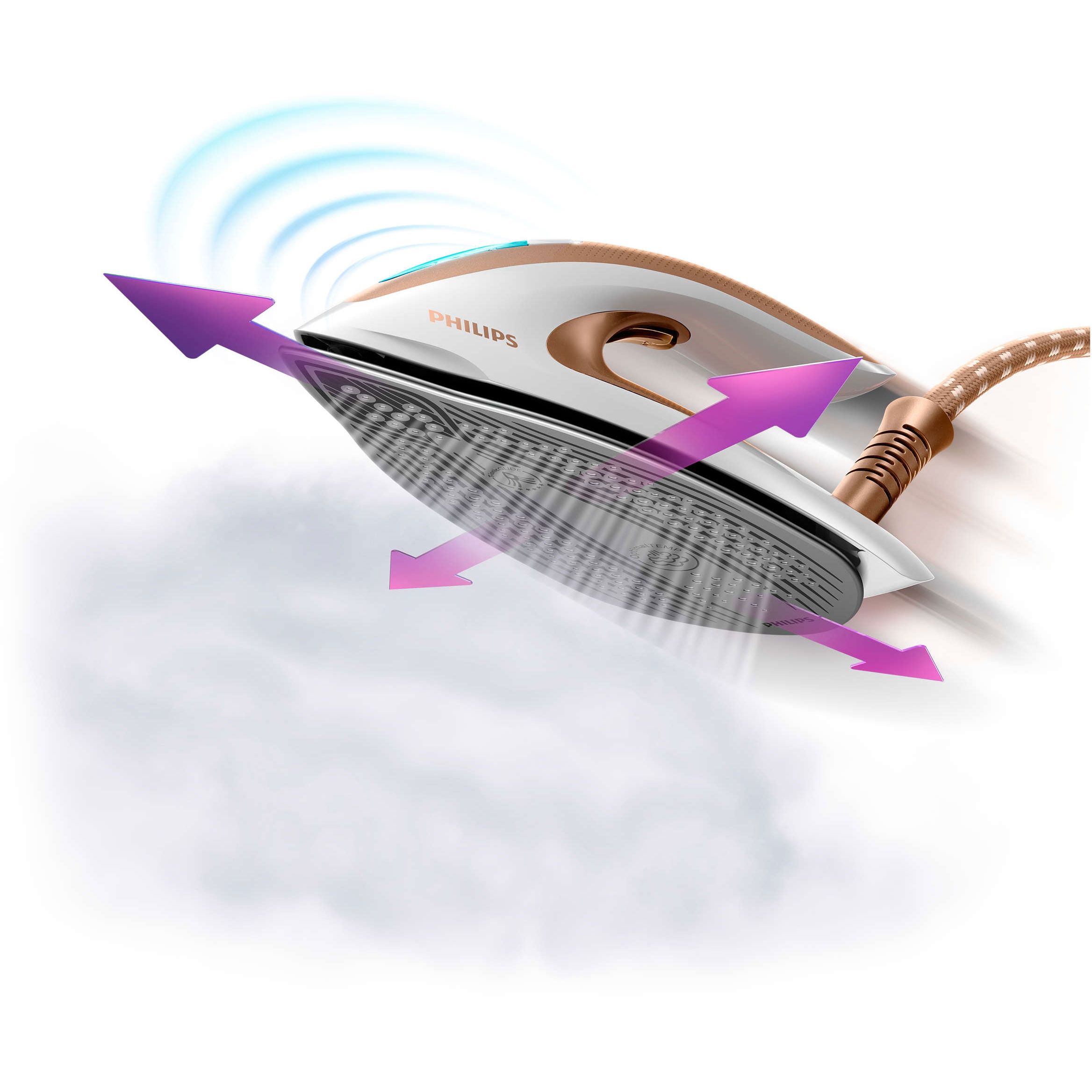 Abur automat inteligent pentru călcat mai rapid şi mai uşor. Senzorul nostru inteligent DynamiQ ştie exact când şi cum se mişcă fierul de călcat, asigurându-ţi abur puternic atunci când ai cea mai mare nevoie – pentru călcat mai uşor şi rezultate mai rapide.