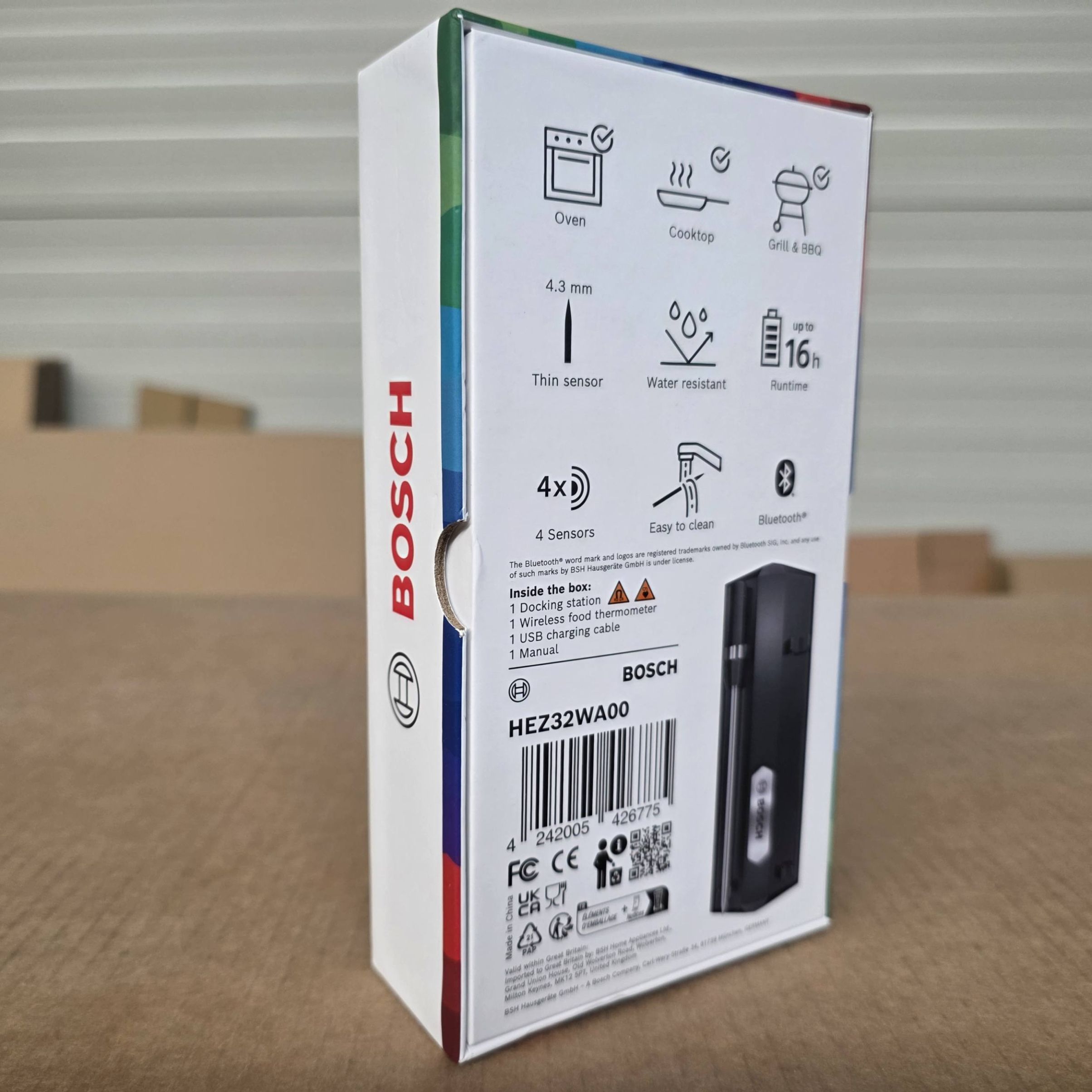 Termometrul wireless PerfectRoast pentru carne te ghidează de fiecare dată către rezultate de gătit ușoare și sănătoase. Patru senzori din interiorul acului extra subțire măsoară temperatura centrală a vasului. Se conectează la aplicația Home Connect prin Bluetooth și astfel poți monitoriza procesul de gătit de oriunde! Prin intermediul aplicației, vei primi o notificare când este atins nivelul dorit de preparare, iar cuptorul este oprit automat. Reține doar că trebuie să rămâi în raza de acțiune Bluetooth (până la 50 m linie vizuală) pentru informații despre procesul de gătit. În plus, oprirea cuptorului de la distanță este posibilă numai atunci când atât aplicația, cât și cuptorul sunt conectate la internet.