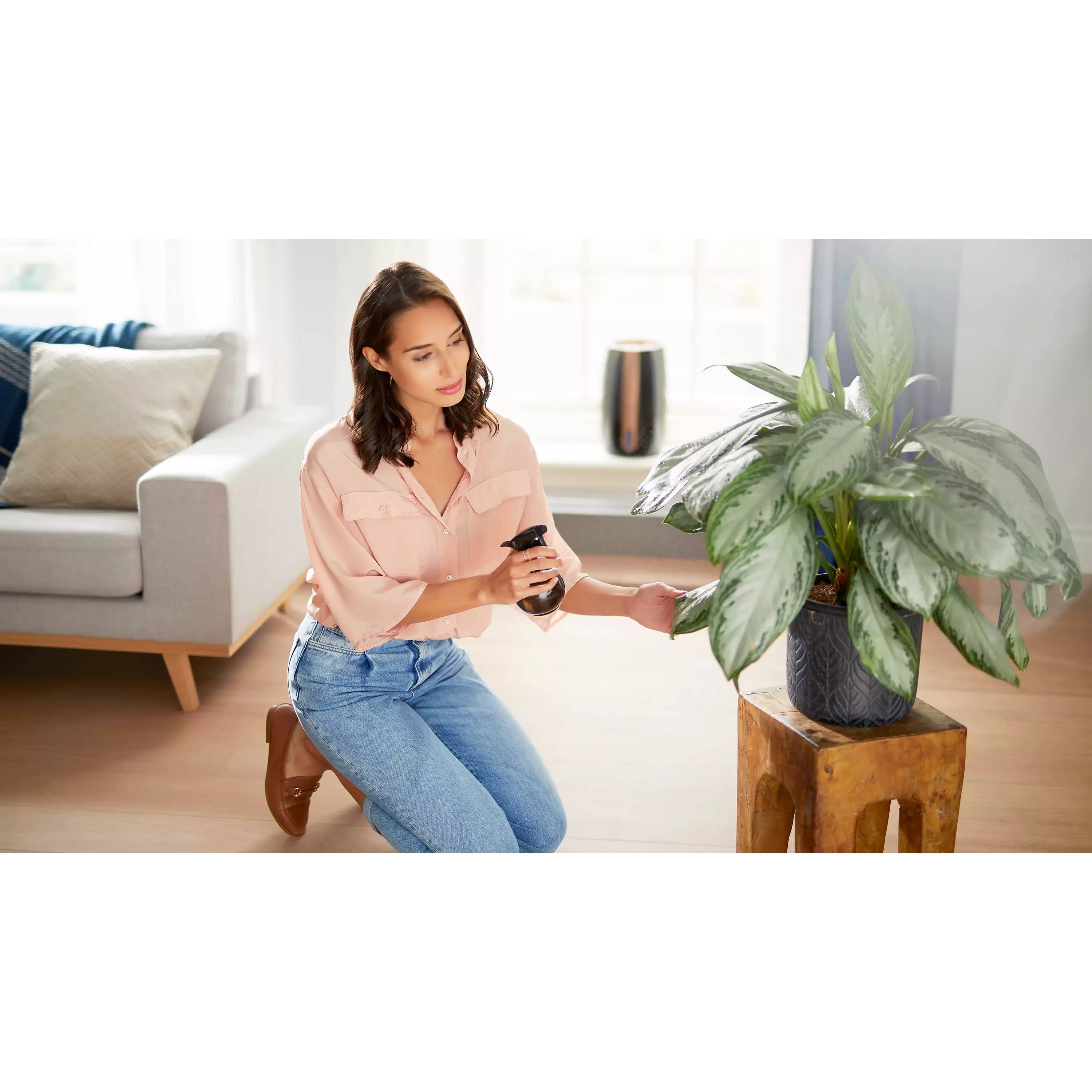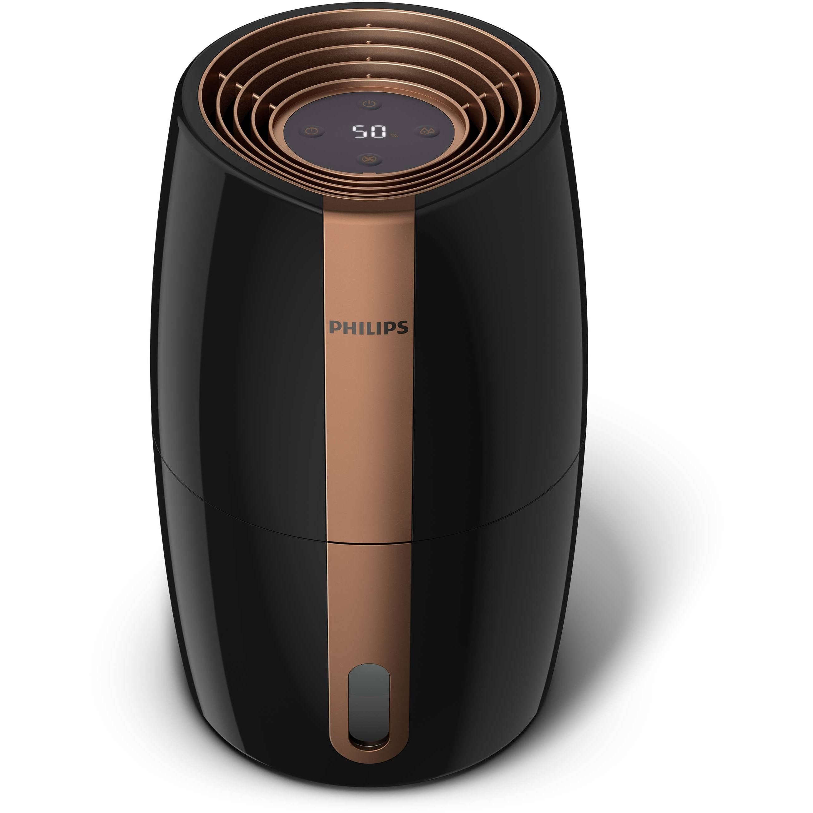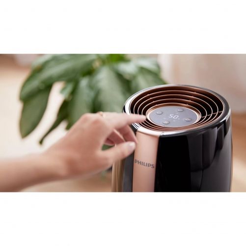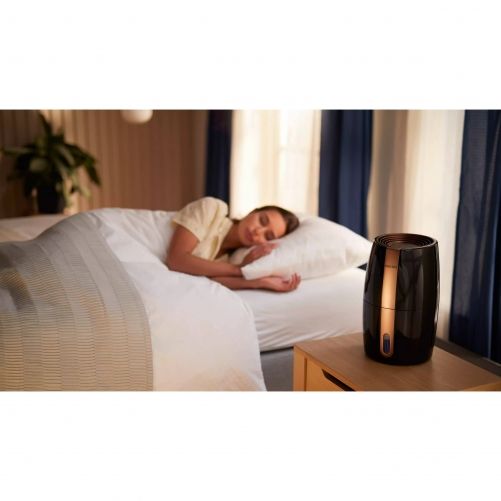 ►Umidificare automată cu 3 setări. Senzorul inteligent de umiditate monitorizează aerul şi se reglează automat pentru a păstra umiditatea la nivelul preferat: 40%, 50% sau 60%. Alerta de nivel al apei te anunţă când trebuie să reumpli rezervorul, iar umidificatorul se opreşte automat când rămâne fără apă.