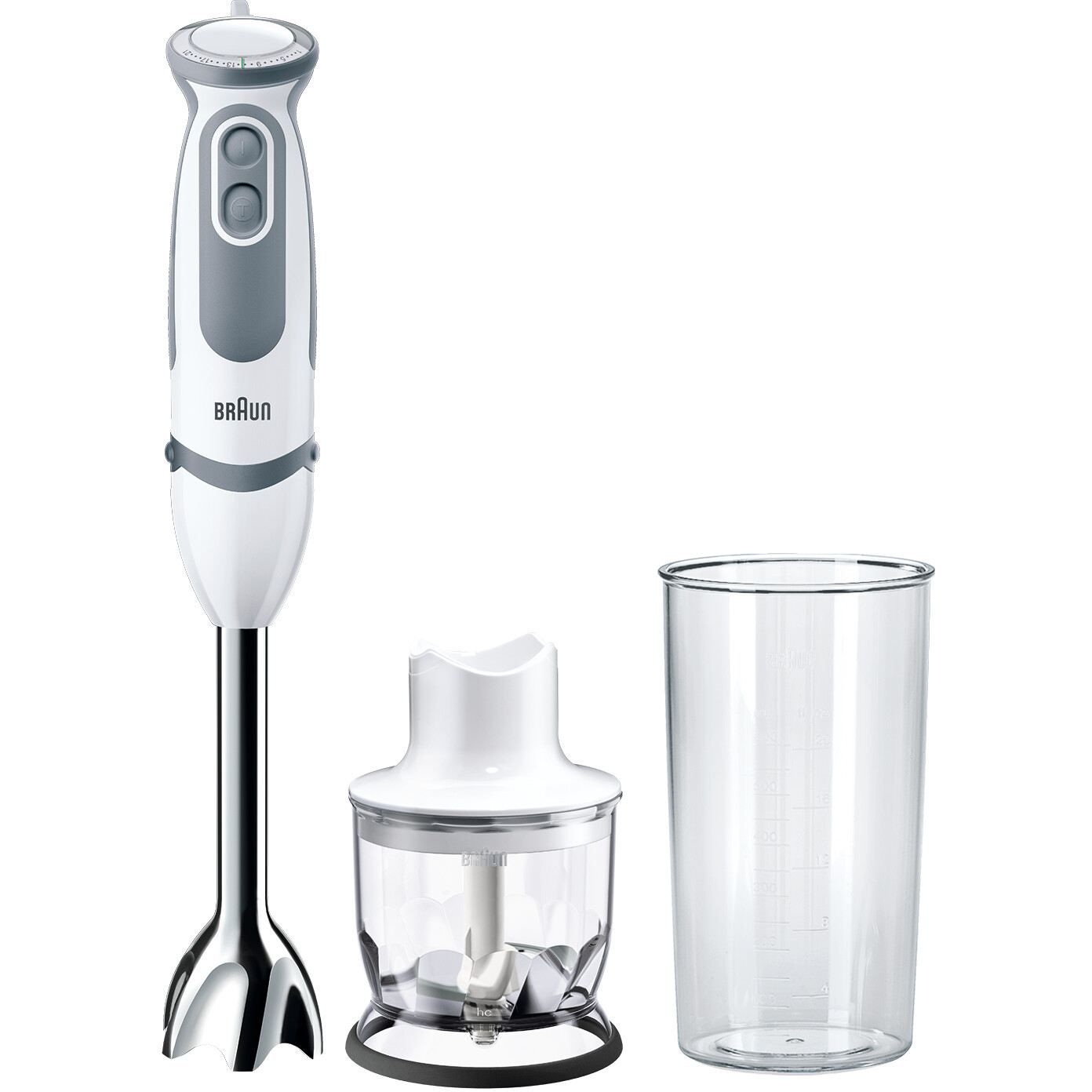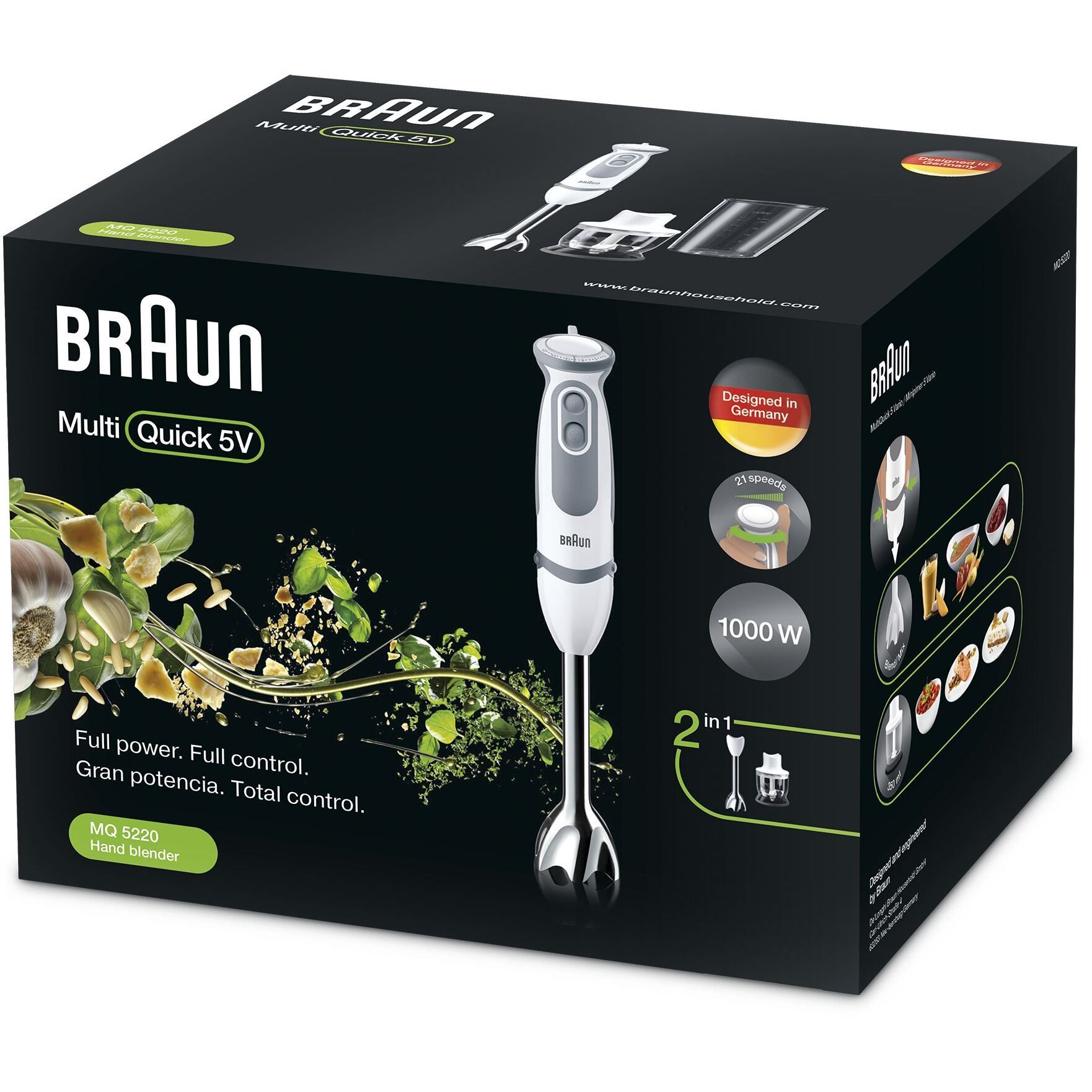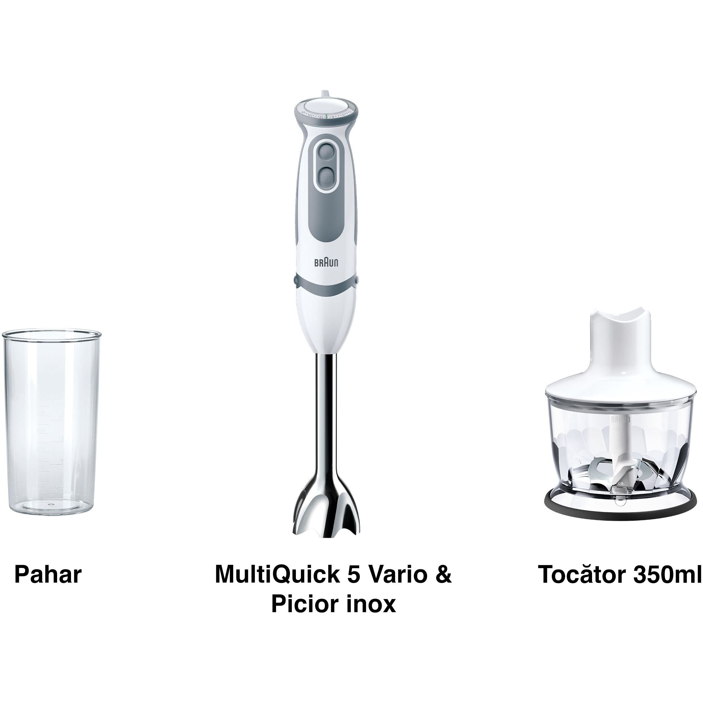 (EOL) Blender de mână BRAUN MultiQuick 5 MQ5220WH, 1000W (21 trepte), Pahar gradat 0.6l, Tocător 0.35l, Powerbell Plus, SPLASHControl, Sistem EasyClick