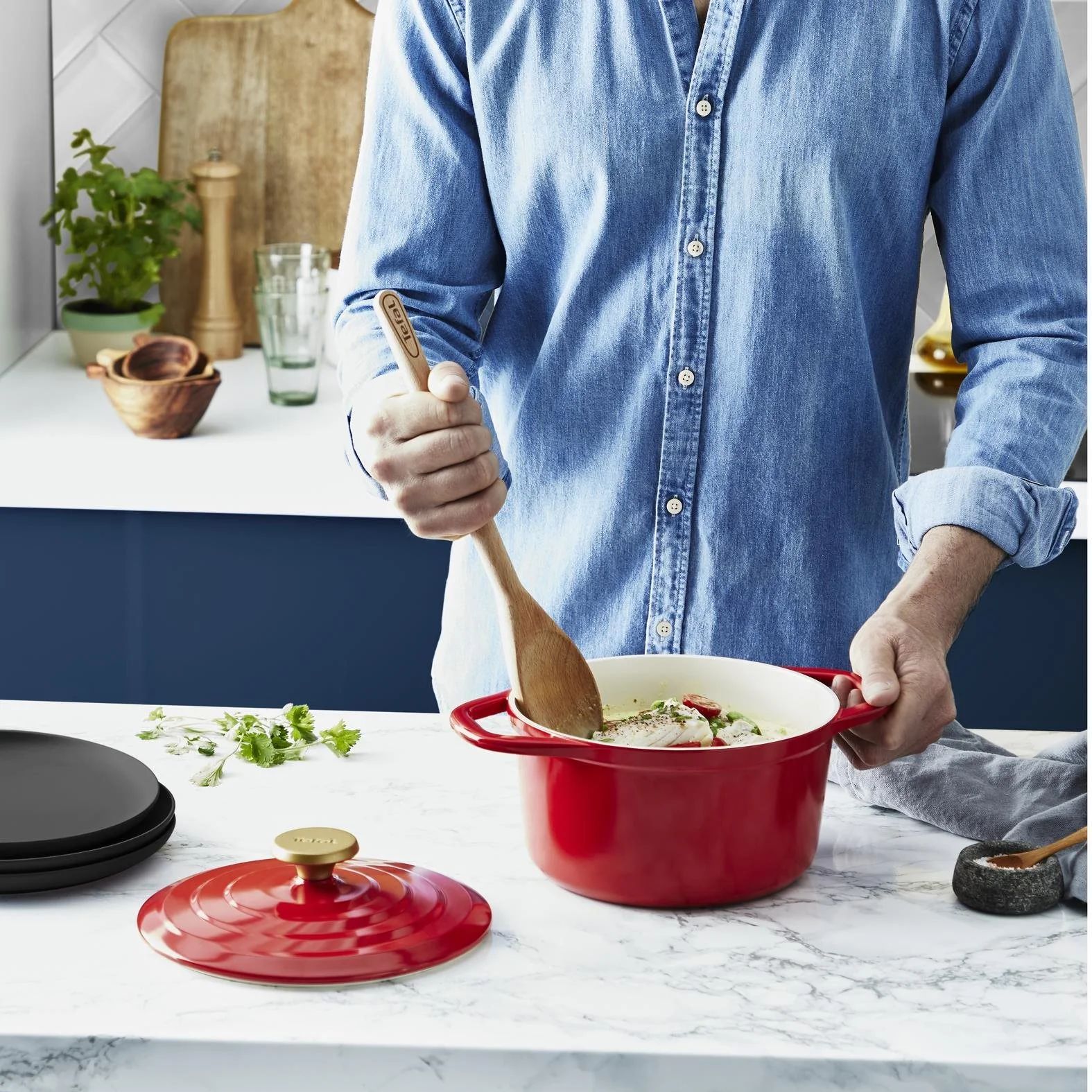 Oală cu capac TEFAL Round Air Cocotte E2544455, D20cm, V3.1L, Aluminiu turnat