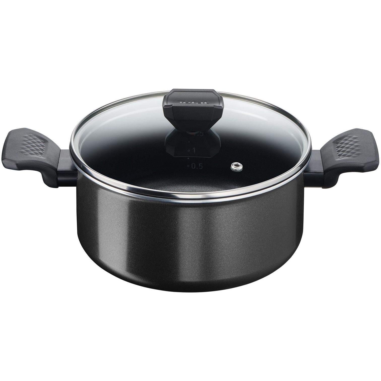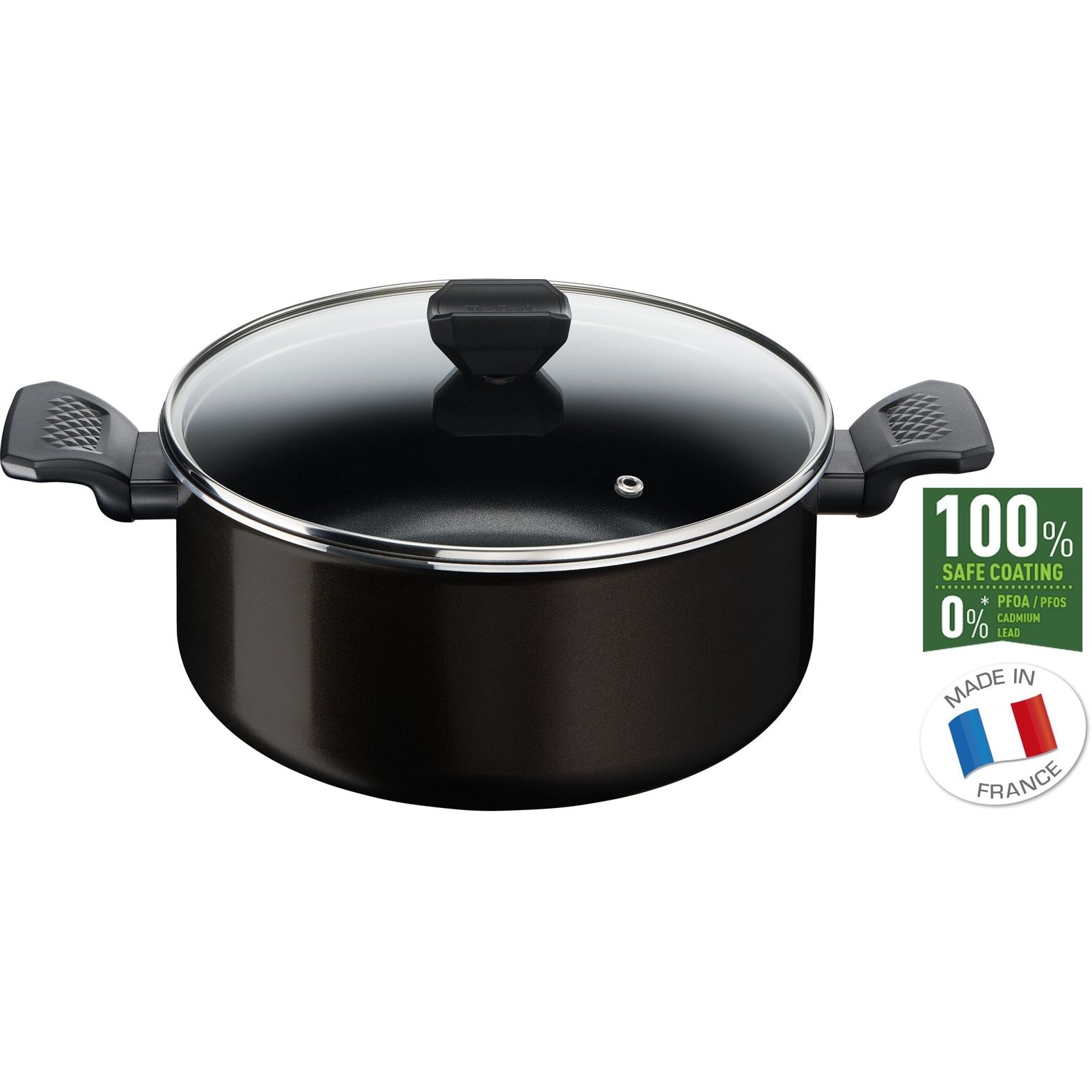 Oală pentru tocănițe cu capac din sticlă TEFAL Extra Cook & Clean B5554653, D24cm, V4,5L, Aluminiu, Suprafață internă / externă antiaderentă, Compabilitate: Gaz, Ceramică, Electric, Culoare: Negru