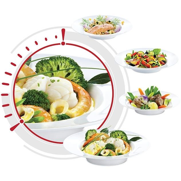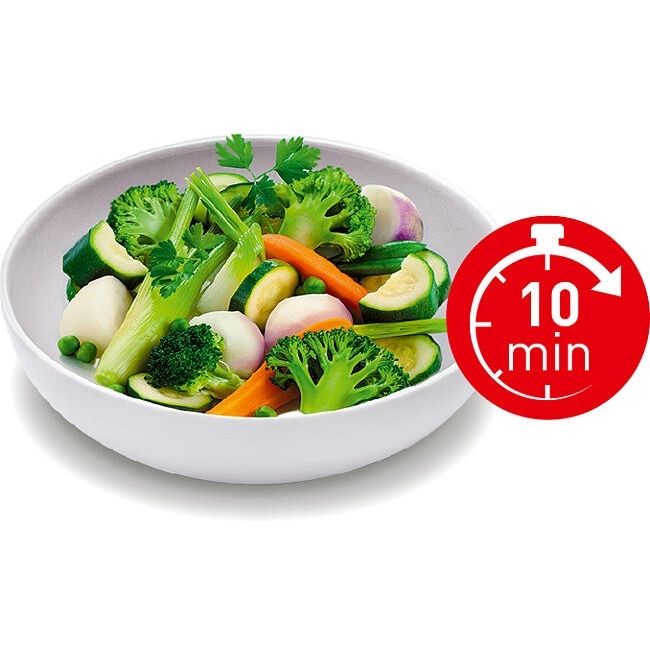 Economiseste pana la 2x mai mult timp decat daca ai gati folosind o oala (ex: broccoli in 10 minute vs 26 minute). |