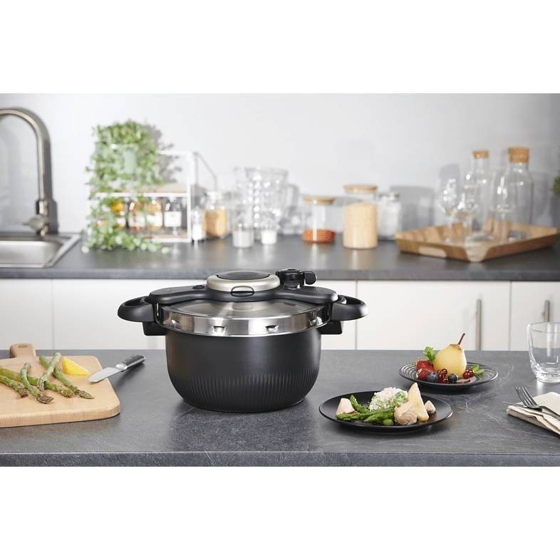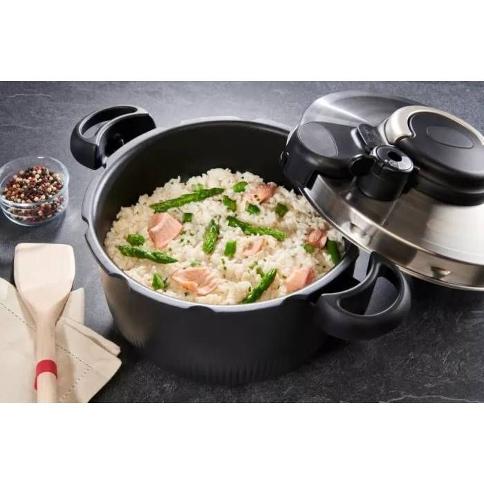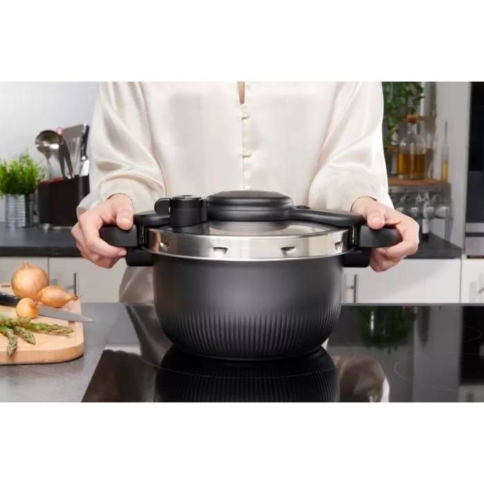 Oală sub presiune TEFAL ClipsoMinut Delice P4800731, V6L, Oală D24cm (bază D17.5cm), 2 nivele de presiune, 5 sisteme de siguranță, Cuvă din aluminiu teflonat cu mânere fixe, Coș din inox