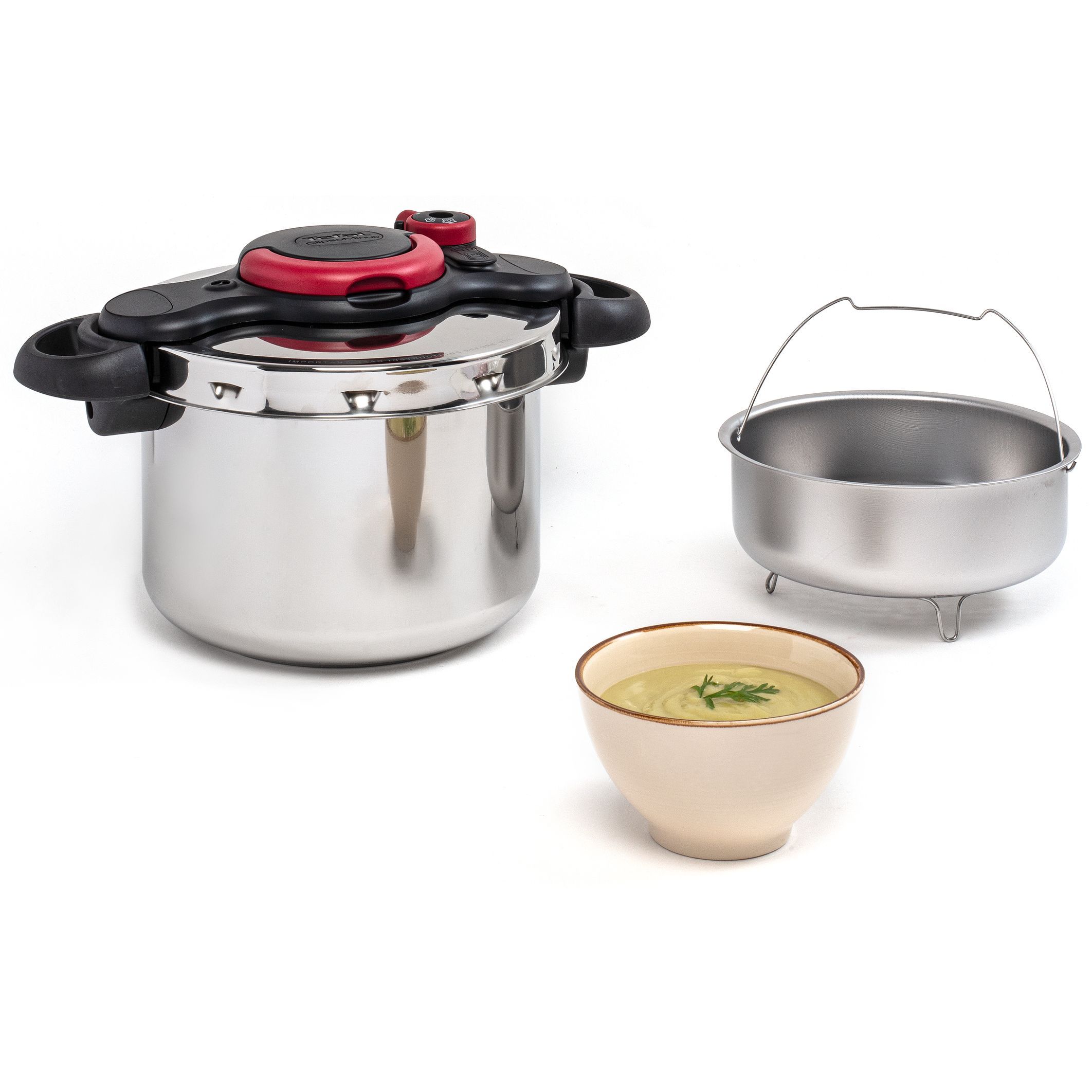 TEFAL ClipsoMinut’ Easy asigură siguranță totală la fiecare utilizare. Oala beneficiaza de un sistem complet de siguranță în 5 puncte pentru sesiuni de gătit fără griji.