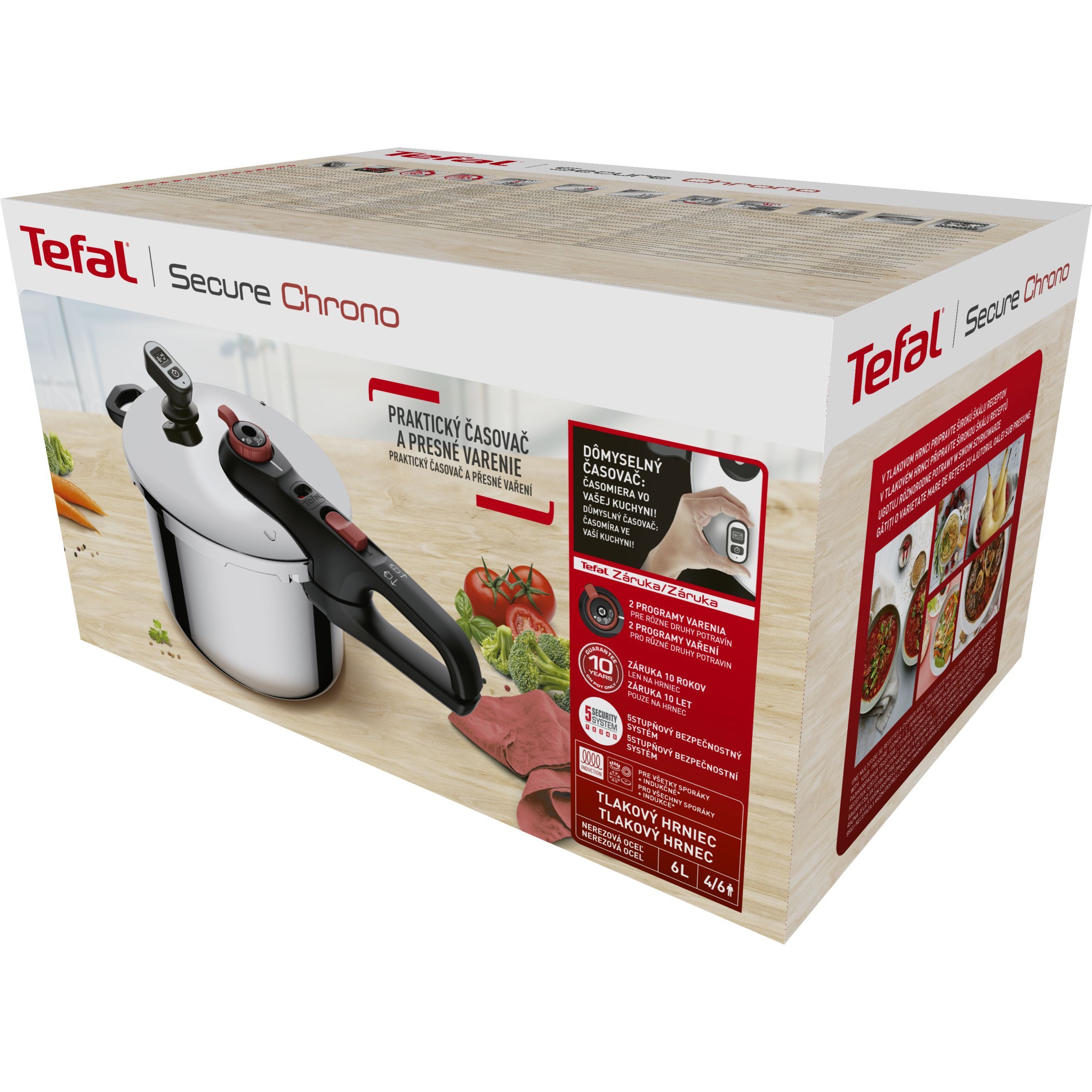 Gătiți o varietate de preparate irezistibile și sănătoase intr-un timp scurt cu oala sub presiune TEFAL Secure Chrono! Cu o capacitate de 6 litri și un design elegant, este ajutorul perfect din bucătăria dumneavoastră.