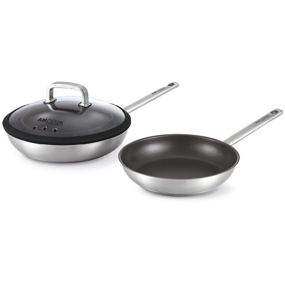 Set de 2 tigăi AMCook by BergHOFF Senna S3 8500731 - 17004686, D28cm, D24cm, Capac Gourmet 24~28cm ce adună condensul, Oțel inoxidabil 18/10, Înveliș antiaderent, Design pentru utilizare intensă