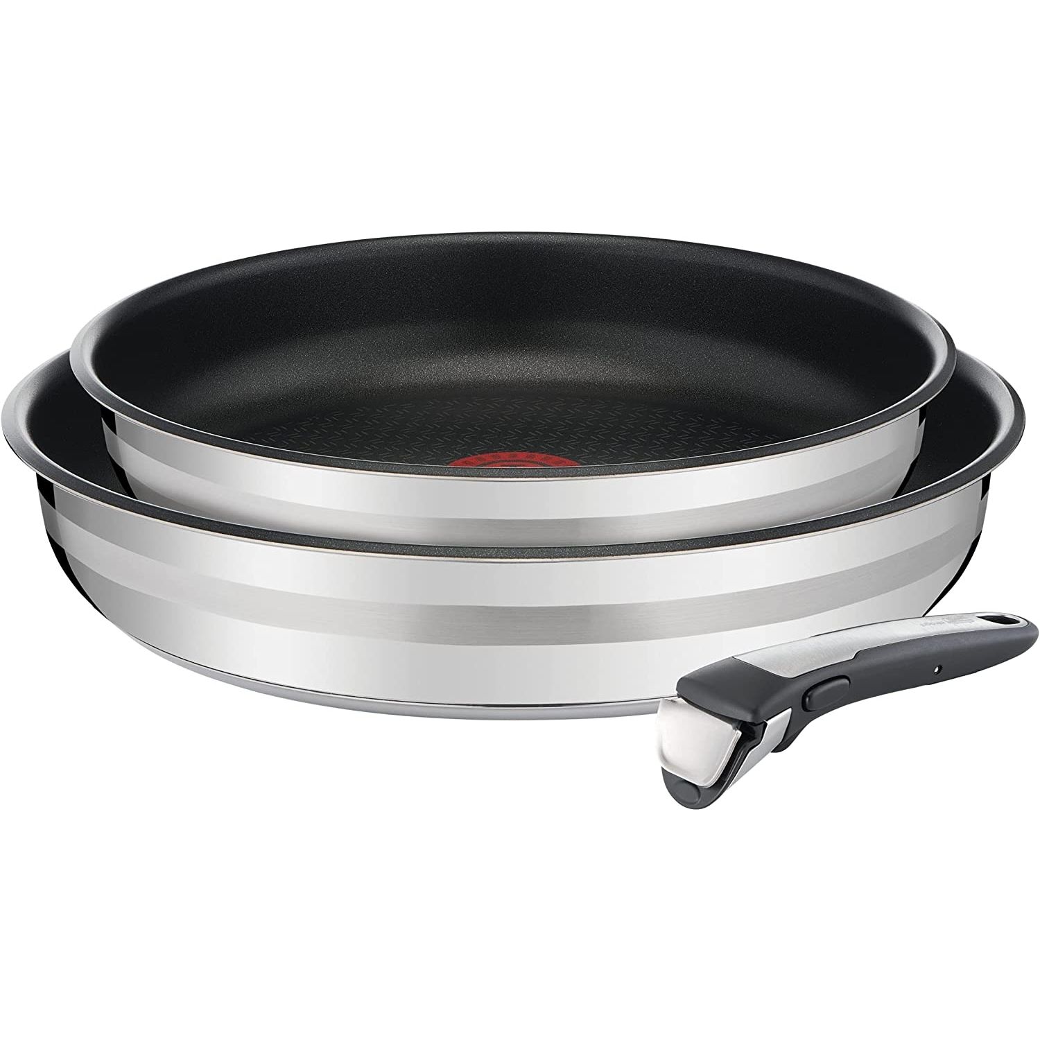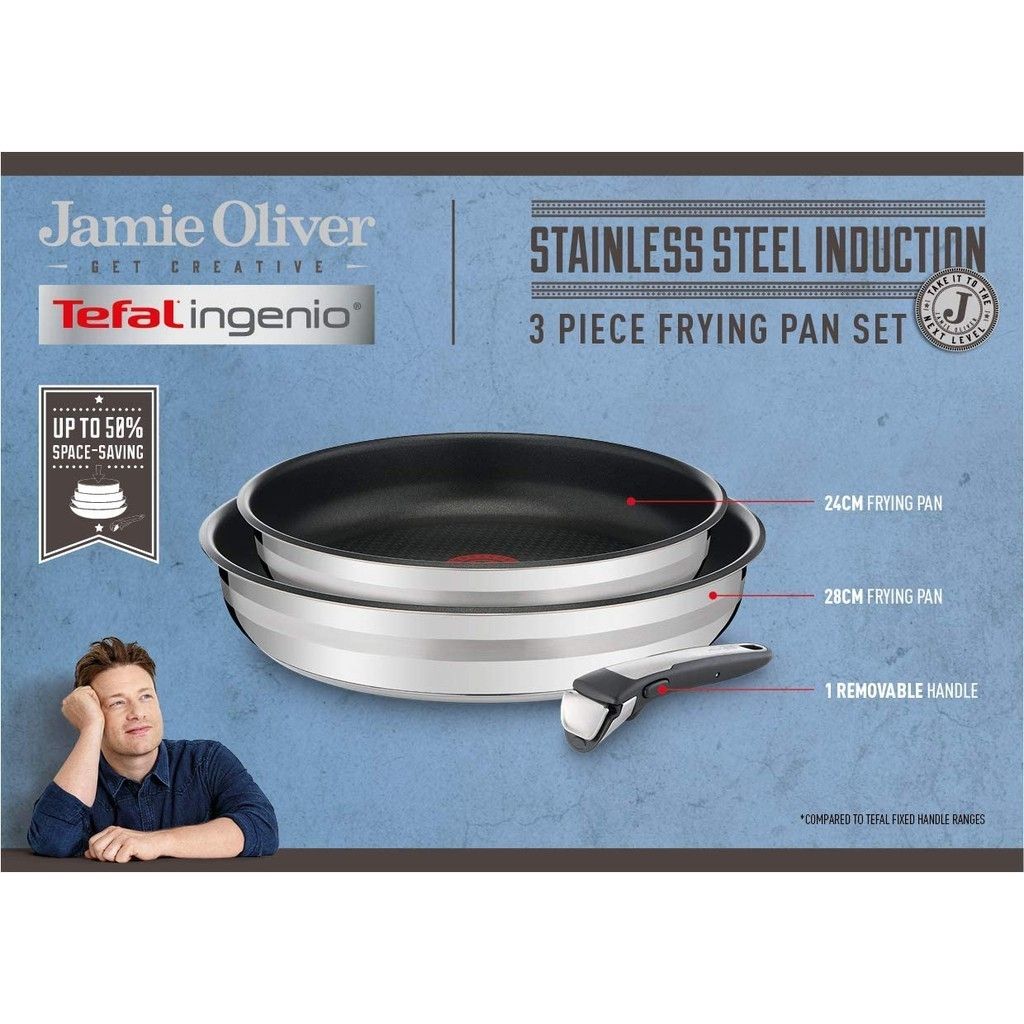 Set de 3 piese Tefal Ingenio Jamie Oliver L9569432, Thermo-Spot, Acoperire TitaniumPro, Compatibilitate: Toate plitele, inclusiv inducția, Culoare: Argintiu / Negru