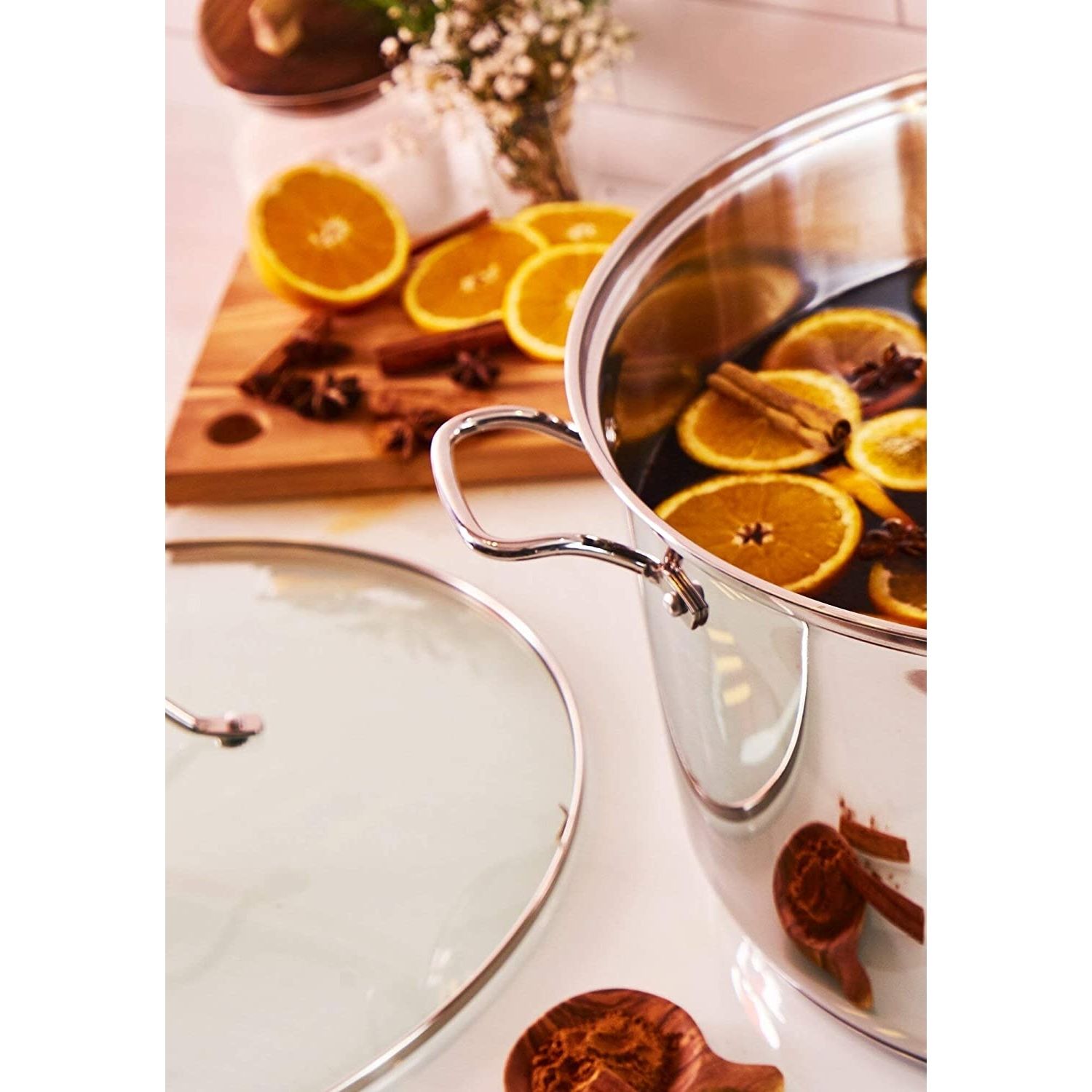 Oală pentru supe cu capac de sticlă TEFAL INTUITION A7027985, D22cm, V6L, Oțel inoxidabil 18/10, Mânere fixe, Scală gradată, 1.58kg