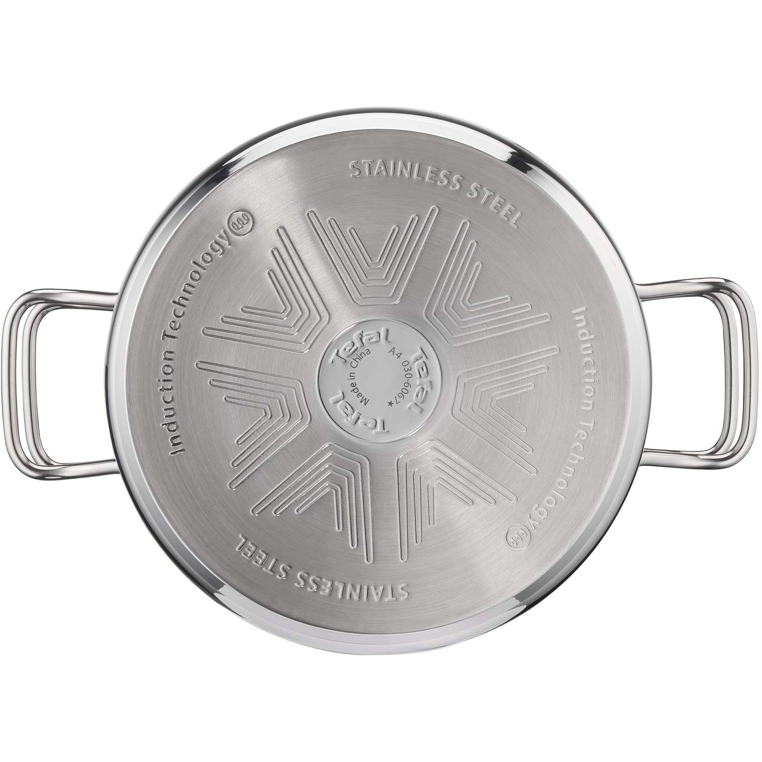 Oală pentru tocănițe cu capac de sticlă TEFAL INTUITION A7024685, D24cm, V4.9L, Oțel inoxidabil 18/10, Mânere fixe, Scală gradată, 1.8kg