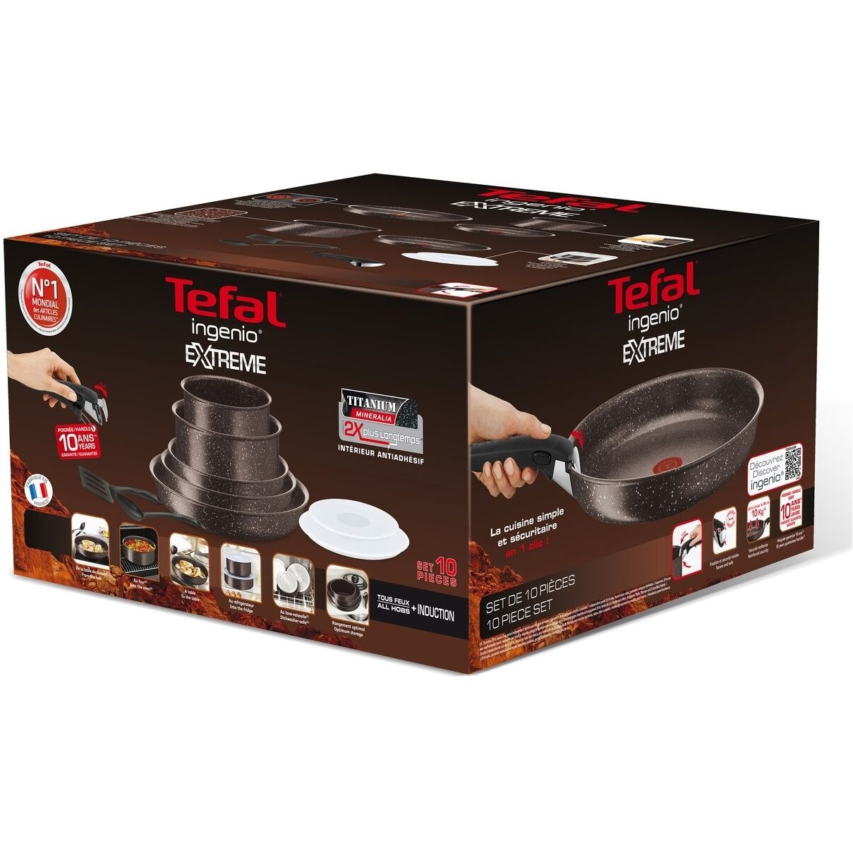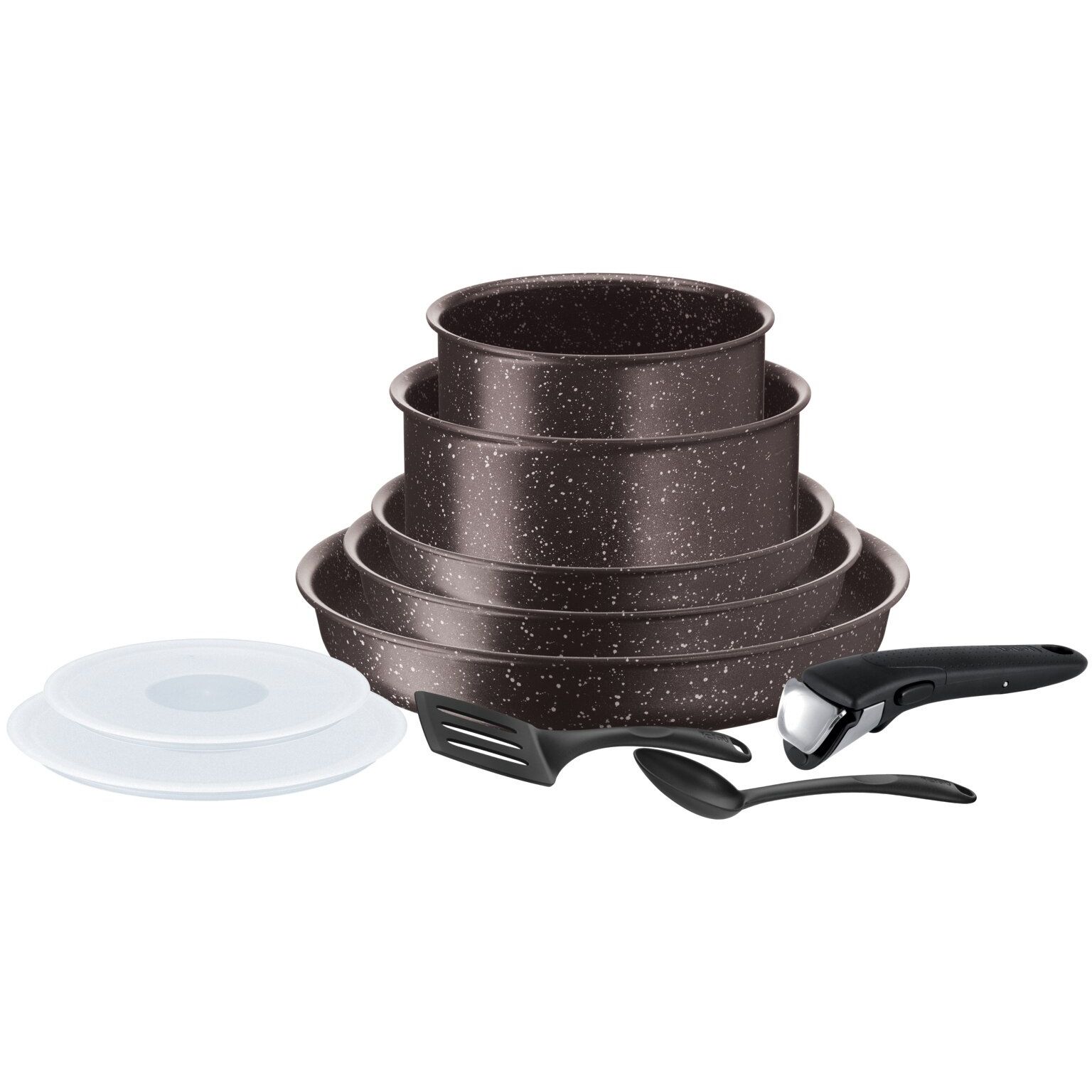 Set de oale cu efect de piatră Tefal Ingenio Extreme, 10 piese, 22; 24; 28; 16; 20Cm, Suprafață antiaderentă TITANIUM MINERALIA, Thermo-Spot®, Compatibilitate: Gaz, Electric, Ceramic, Inducție, Culoare: Maro