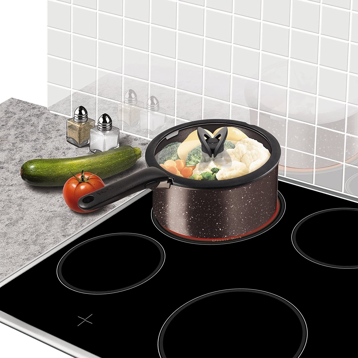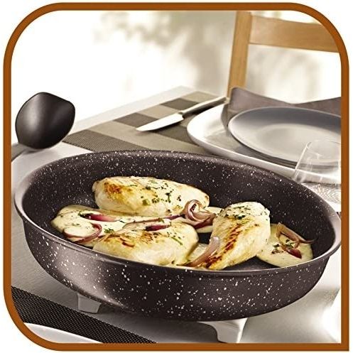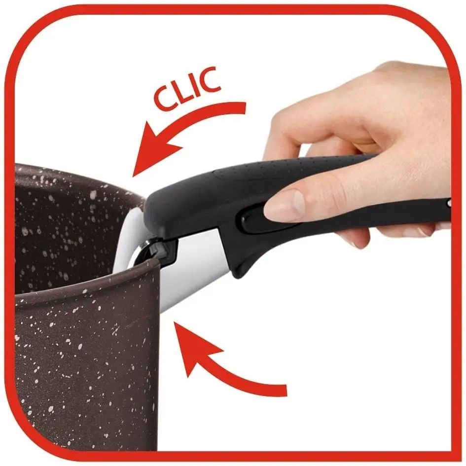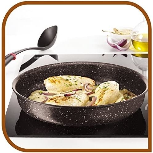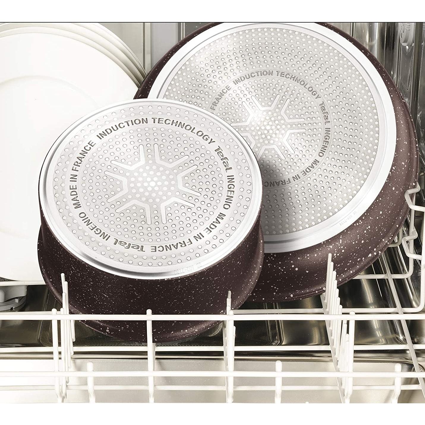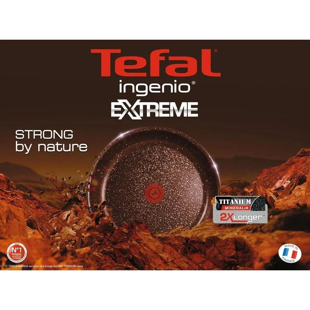 Set de vase Tefal Ingenio Extreme L6789102, Aspect piatră, 15 piese, Aluminiu, Suprafață anti-aderentă Titanium Mineralia2X, Sistem Thermo-Spot, Compatibil cu toate sursele de căldură, Culoare: Maro