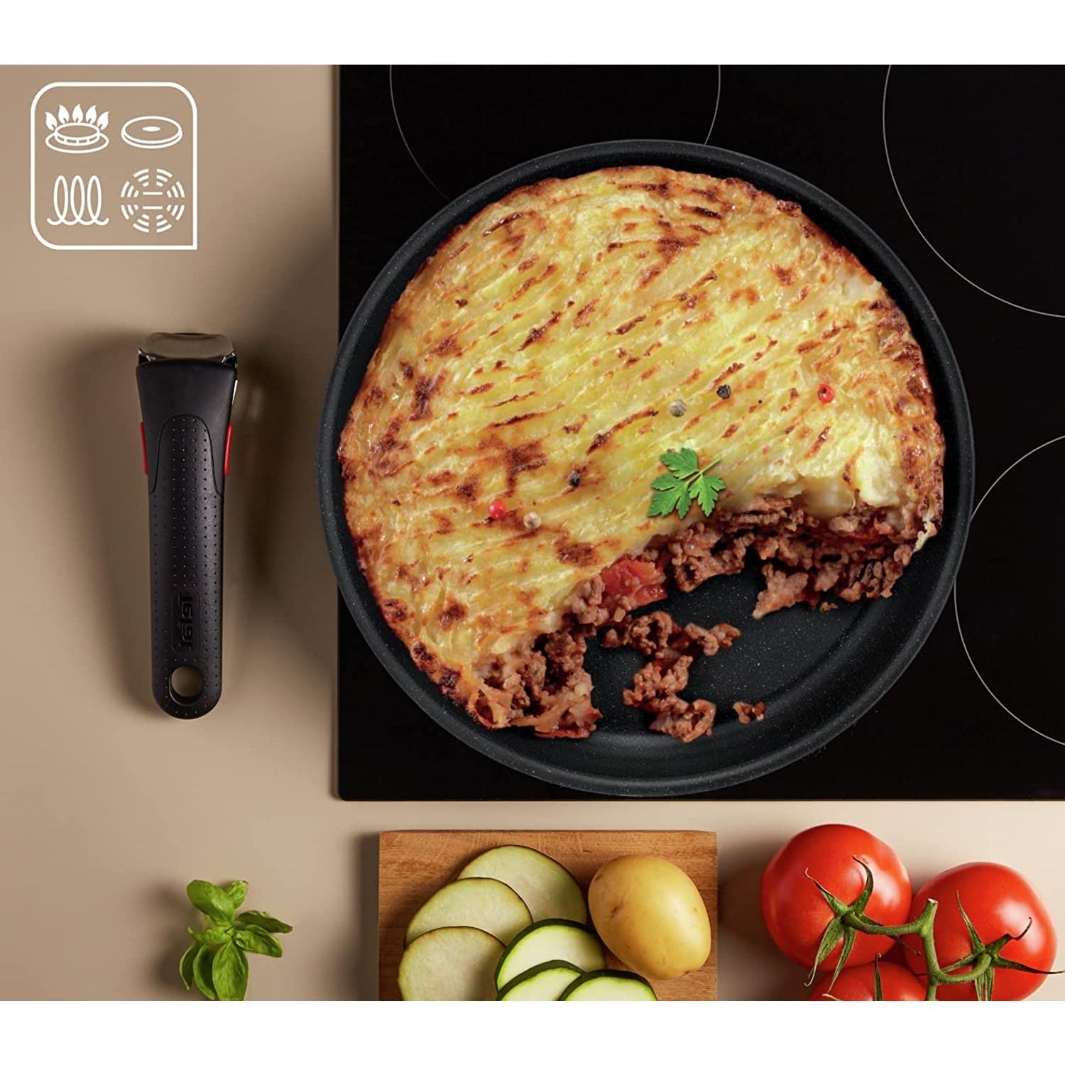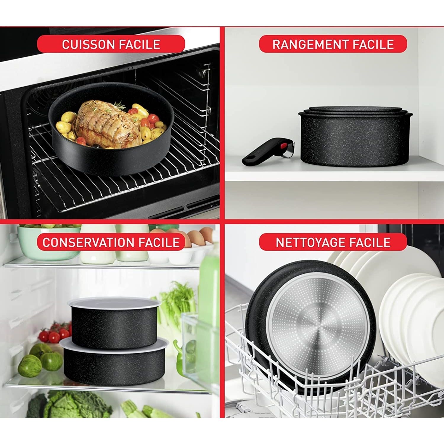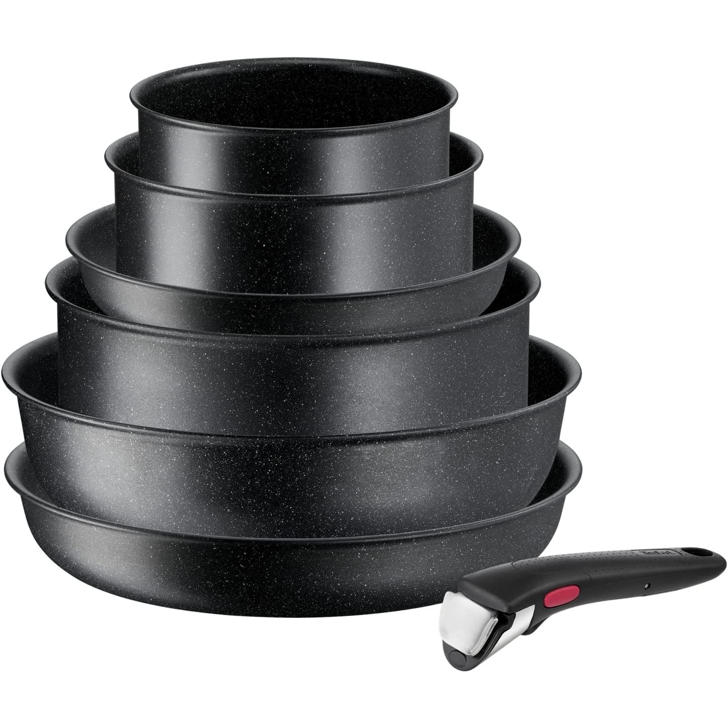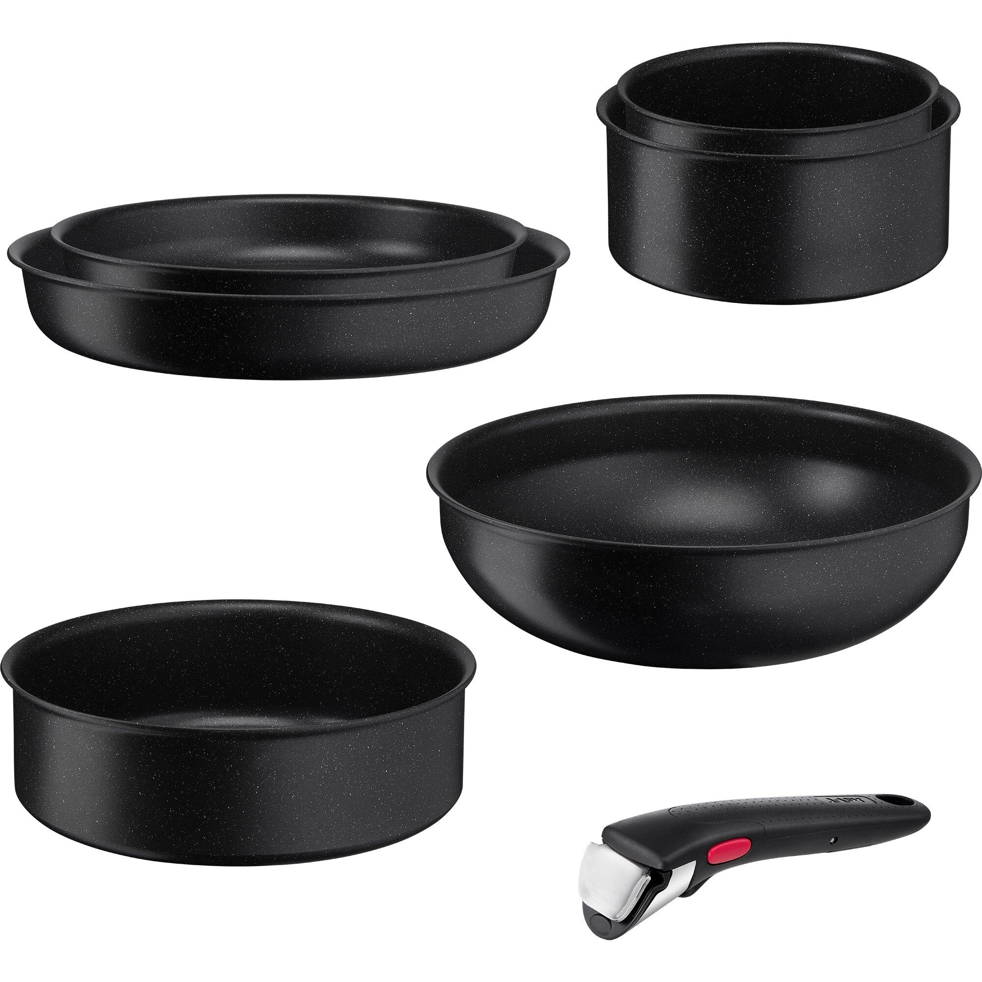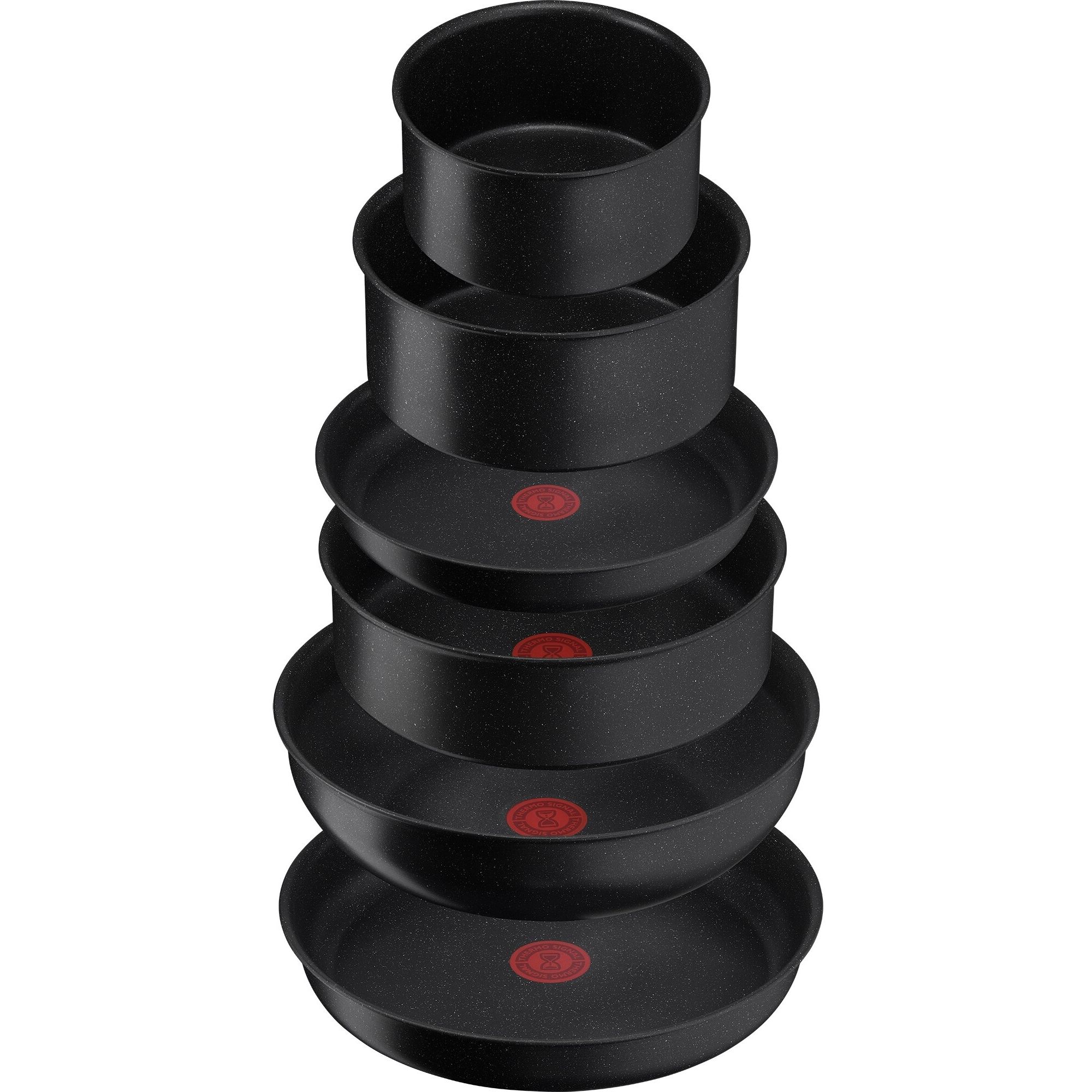 Set de vase de gătit Tefal Ingenio Black Stone L3998702, 7 piese, Tehnologie Thermo-Fusion™, Thermo-Signal™, Suprafață anti-aderentă Mineralia+, Compatibil cu toate sursele de căldură, Culoare: Negru