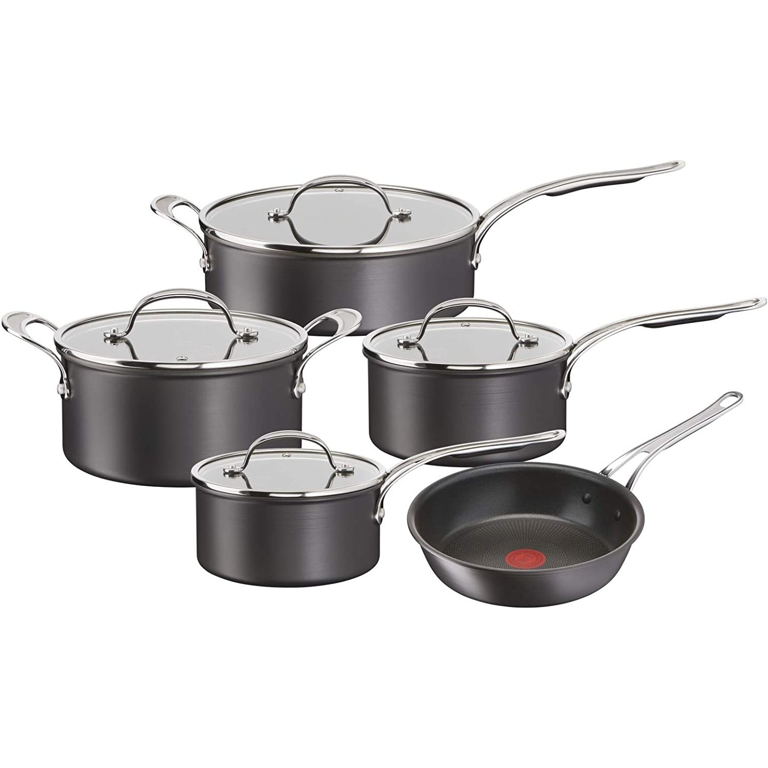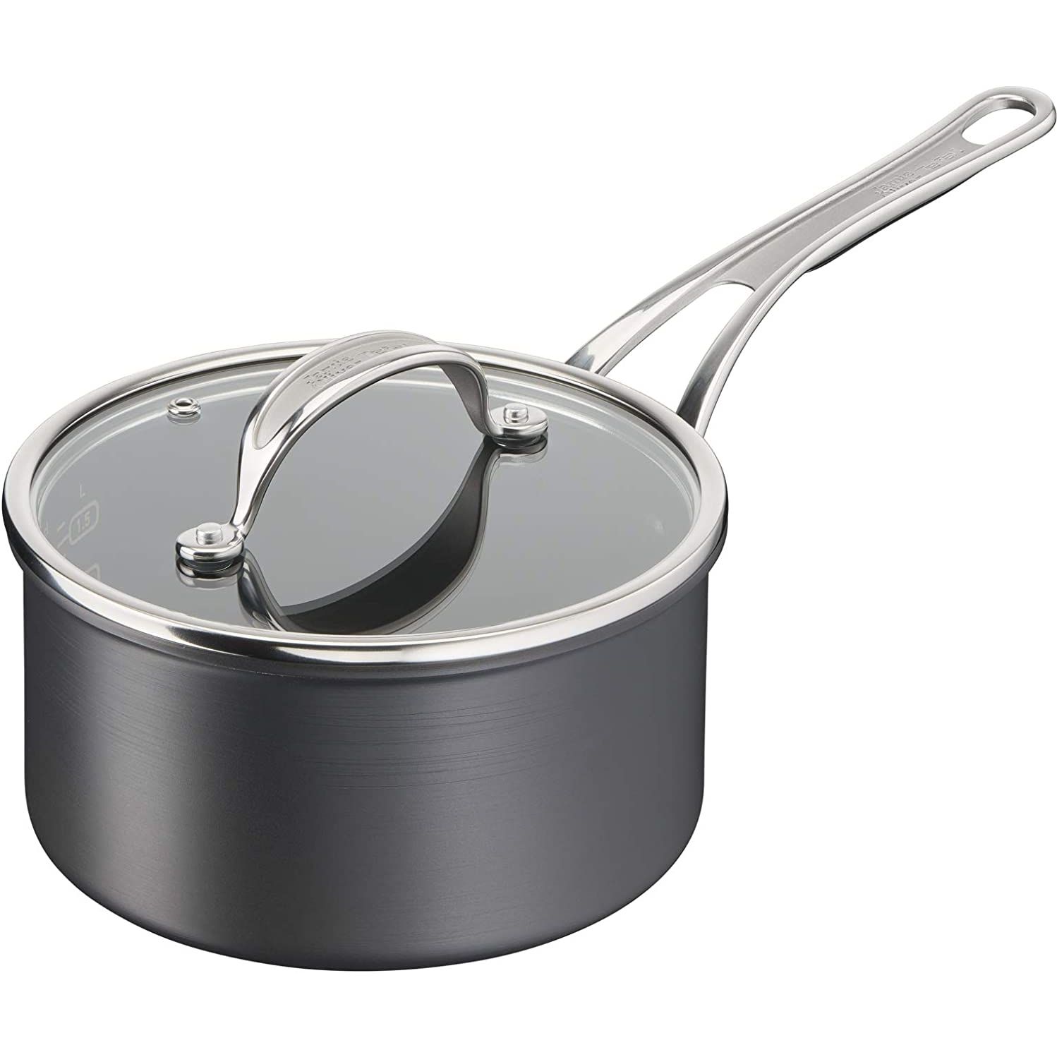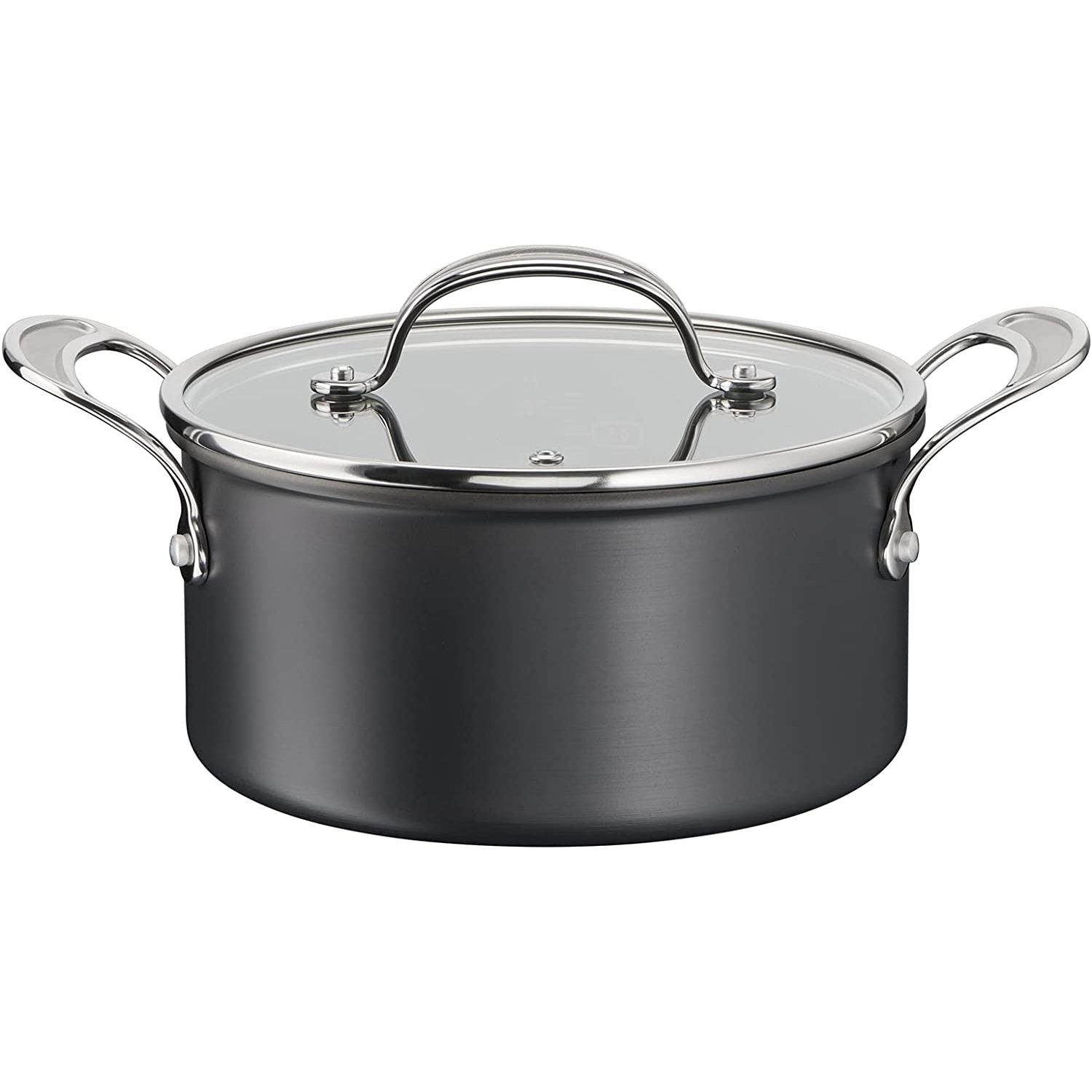 Miezul solid din aluminiu oferă o distribuție rapidă pentru gătit uniform, iar stratul antiaderent cu infuzie de titan este durabil și permite o curățare ușoară.
