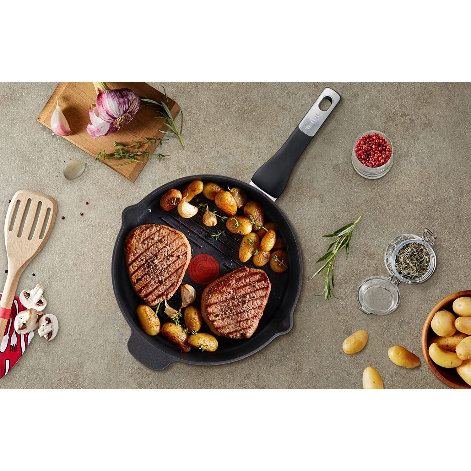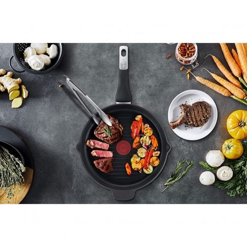 Tigaia grill Unlimited oferă rezultate de top datorită caracteristicilor de nivel înalt: stratul anti-aderent 100% sigur, cu inserții de titan asigură durabilitate şi performante excepționale, în timp ce tehnologia Thermo-Signal™ te va atenționa atunci când tigaia atinge temperatura ideală pentru gătit.