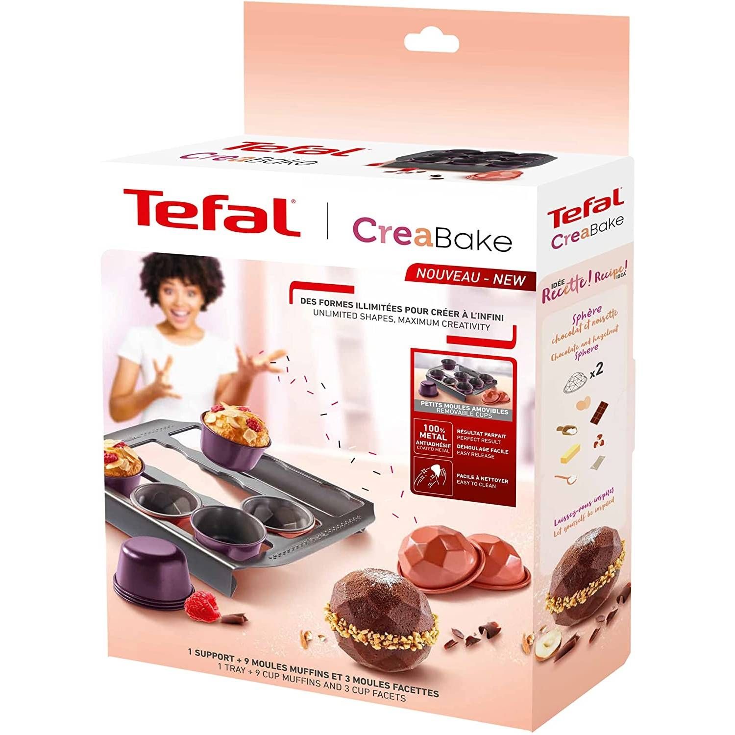 Set de 3 forme TEFAL CreaBake Mini-Cakes J3079804, 8.3x6.5cm, Oțel carbon, Suprafață antiaderentă, Compatibil cu Cake Factory Délices, Dulcis Grey-Holi Pink