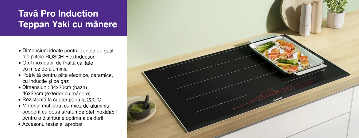 • Dimensiuni ideale pentru zonele de gătit ale plitele BOSCH FlexInduction