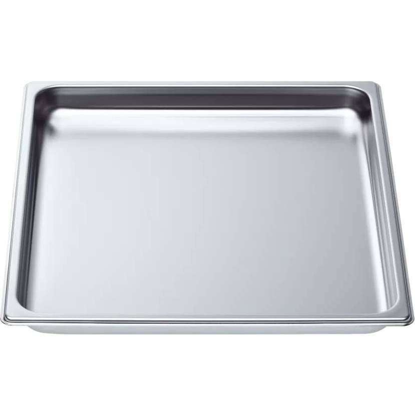 Tavă mare neperforată NEFF Large Unperforated Steam Oven Baking Tray Z1673X0 - 00664949, Gastronorm tray GN2/3, L35.4cm, l32.5cm, H4cm, Adâncime 2.8cm, Oțel inoxidabil, Pentru cuptoare cu aburi