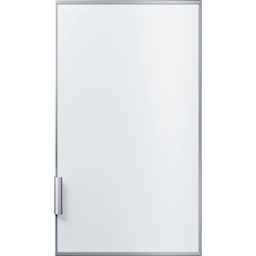 • Panou de ușă alb cu ramă decorativă și mâner din aluminiu