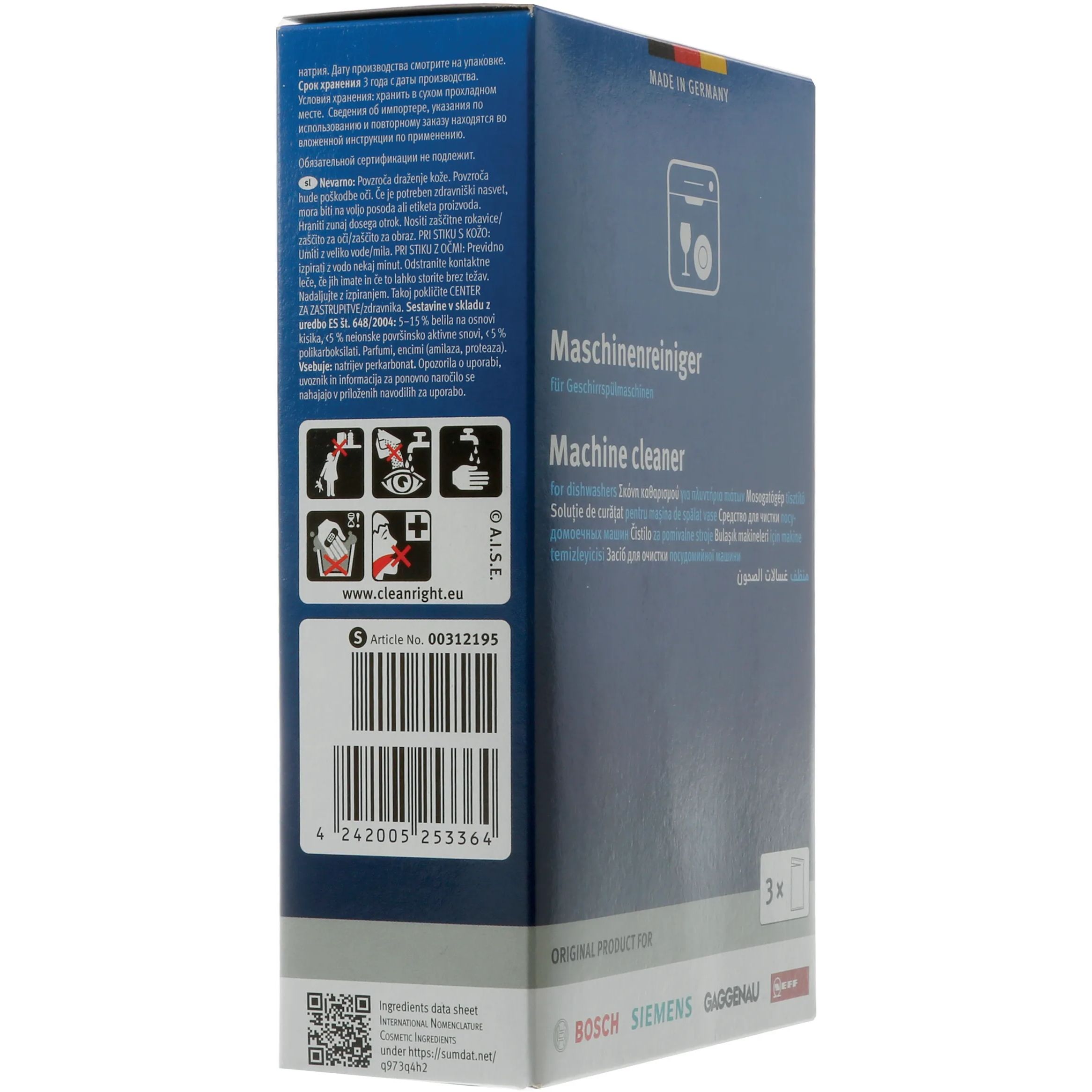 APLICARE: Funcția de memento a mașinii dumneavoastra de spălat vase vă va anunța când trebuie curățată. Pentru mașinile de spălat vase fără funcție de memento, vă recomandăm aplicarea la fiecare 2 luni. NU UTILIZAȚI ÎMPREUNĂ CU DETERGENT ȘI FOLOSIȚI DOAR MAȘINA FĂRĂ INCĂRCARE.