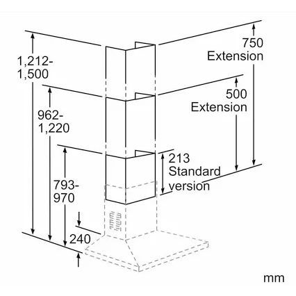 • Pentru o înălțime a aparaturii de 1212-1500 mm