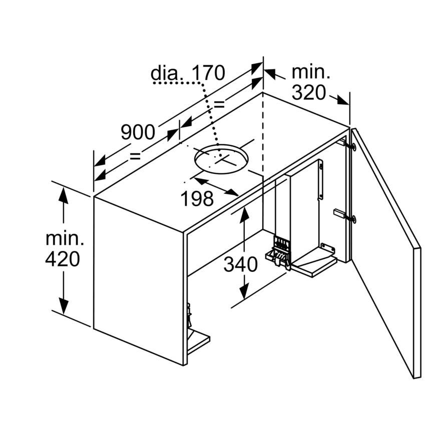 • Pentru montaj hotă telescopică în dulap de 90cm lățime