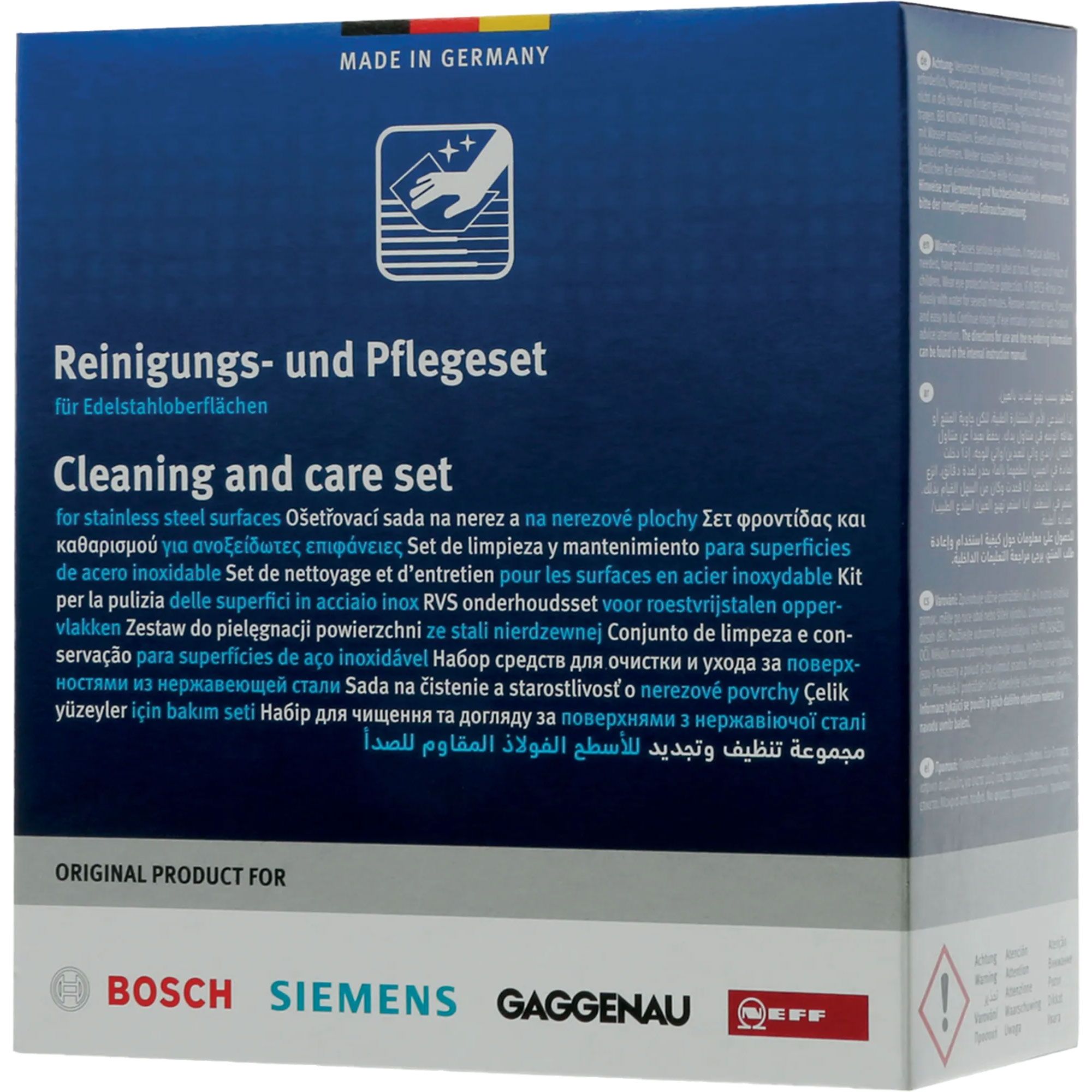• Curățarea poate fi îmbunătățită cu ulei de recondiționare pentru oțel inoxidabil (cod articol: 00311945)