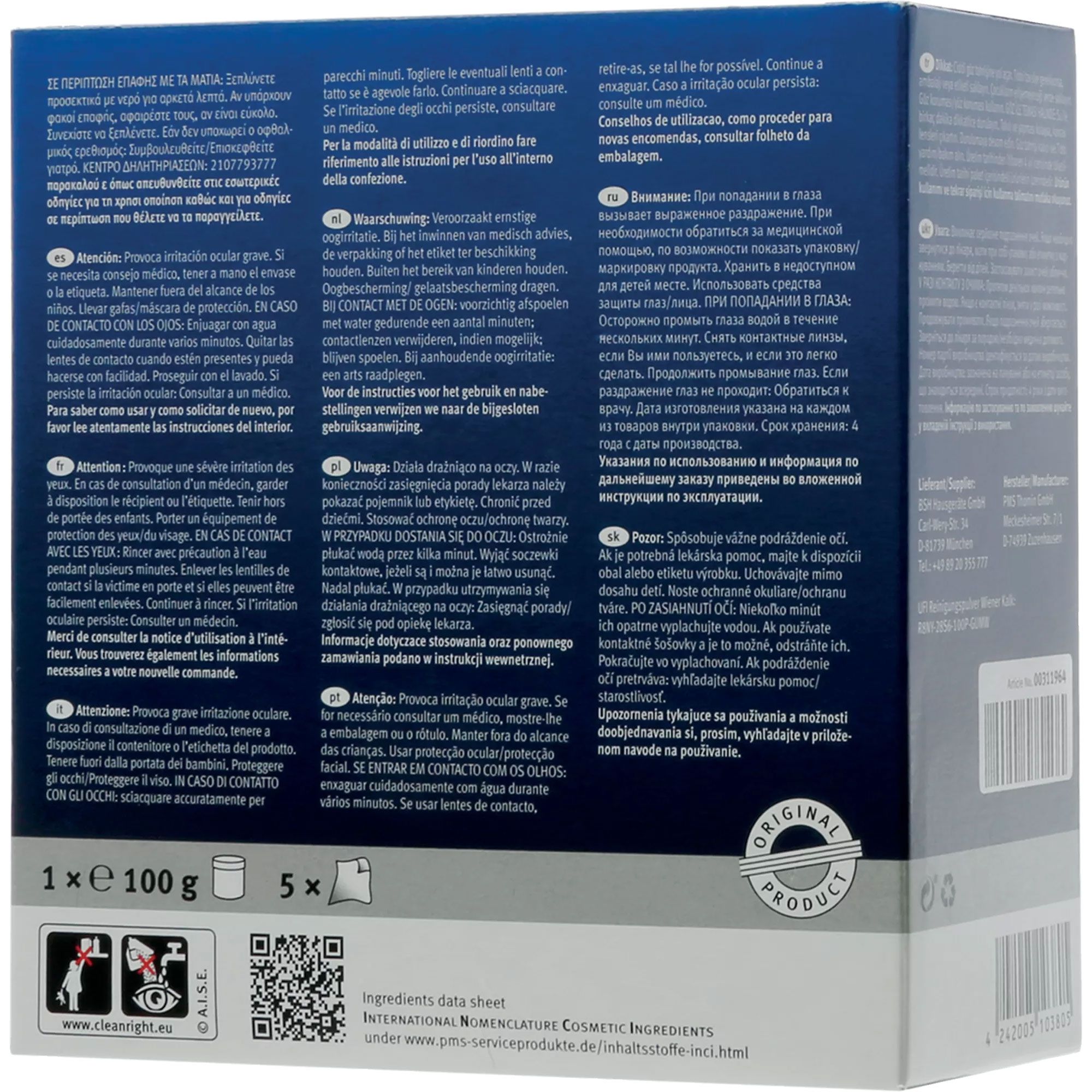 • Cantitate medie pentru o curățare: aprox. 5g