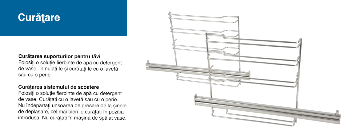 • Accesoriile pot fi scoase din cuptor fără a se înclina datorită fixării stabile