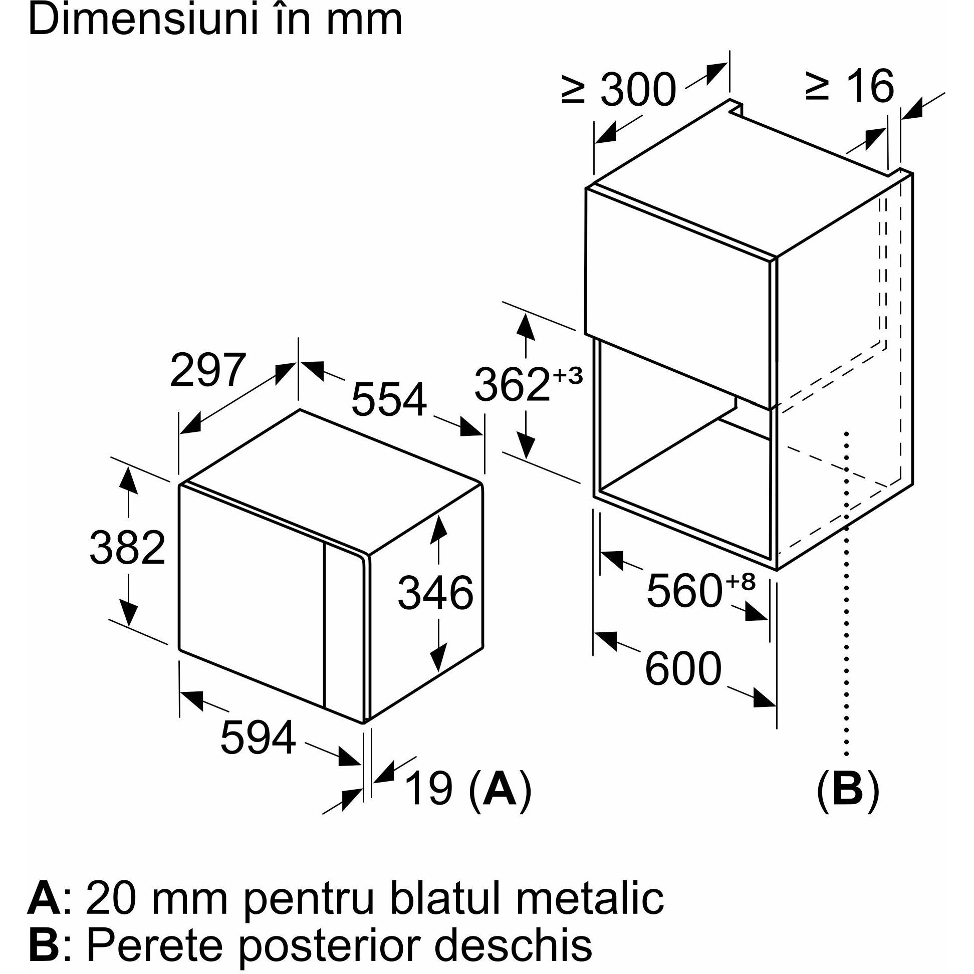 Dimensiuni nișă (ÎxLxA): 560 mm - 568 mm x 362 mm - 365 mm x 320 mm