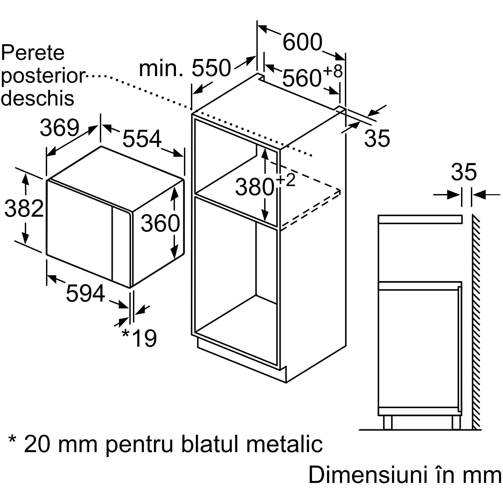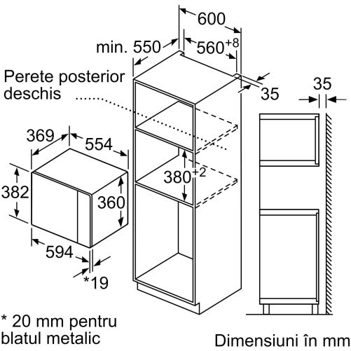 - Dimensiuni nișă (ÎxLxA): 560 mm - 568 mm x 380 mm - 382 mm x 550 mm