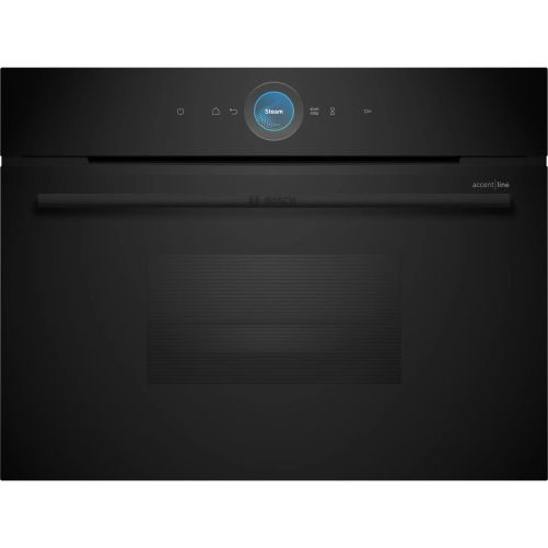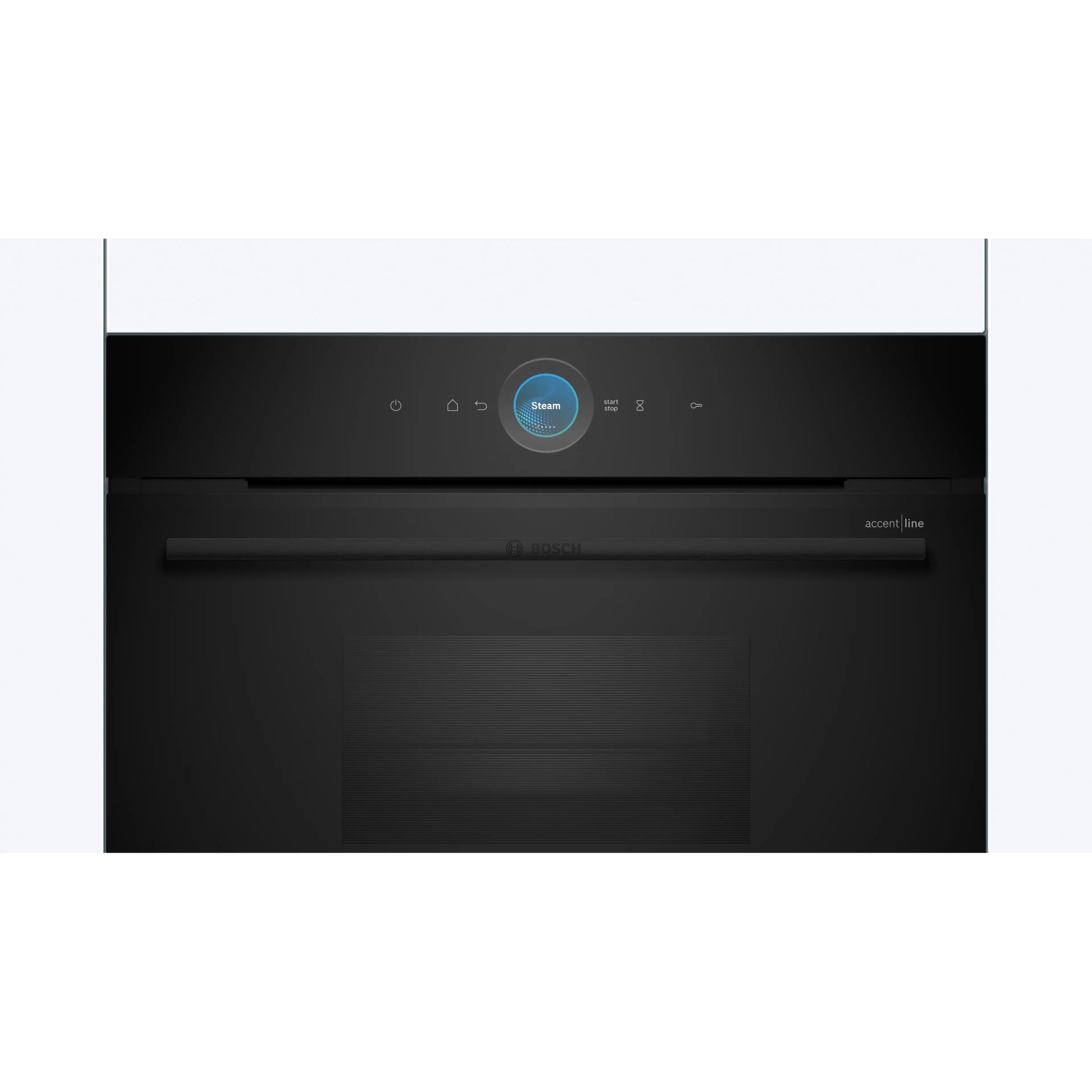 Cuptoarele Seria 8 din gama accent line sunt extrem de uşor de utilizat. Datorită finisajului lor complet negru, se potrivesc perfect cu orice mobilier de bucătărie, indiferent de stil. Iar inelul digital pentru comenzi este nu doar practic, ci şi conferă un plus de stil bucătăriei tale: acesta are un design minimalist atunci când este dezactivat şi se aprinde în culori calde atunci când este activat. De asemenea, navigarea în meniul cuptoarelor Seria 8 din gama accent line este extrem de simplă: poţi seta extrem de rapid şi uşor procesul de preparare şi temporizatorul direct pe afişajul tactil mare. Uşa cu geam fumuriu completează ingenios aspectul ultra-modern şi neted al cuptoarelor, iar tu poţi vedea în permanenţă preparatele din cuptor în timp ce acestea sunt gătite.