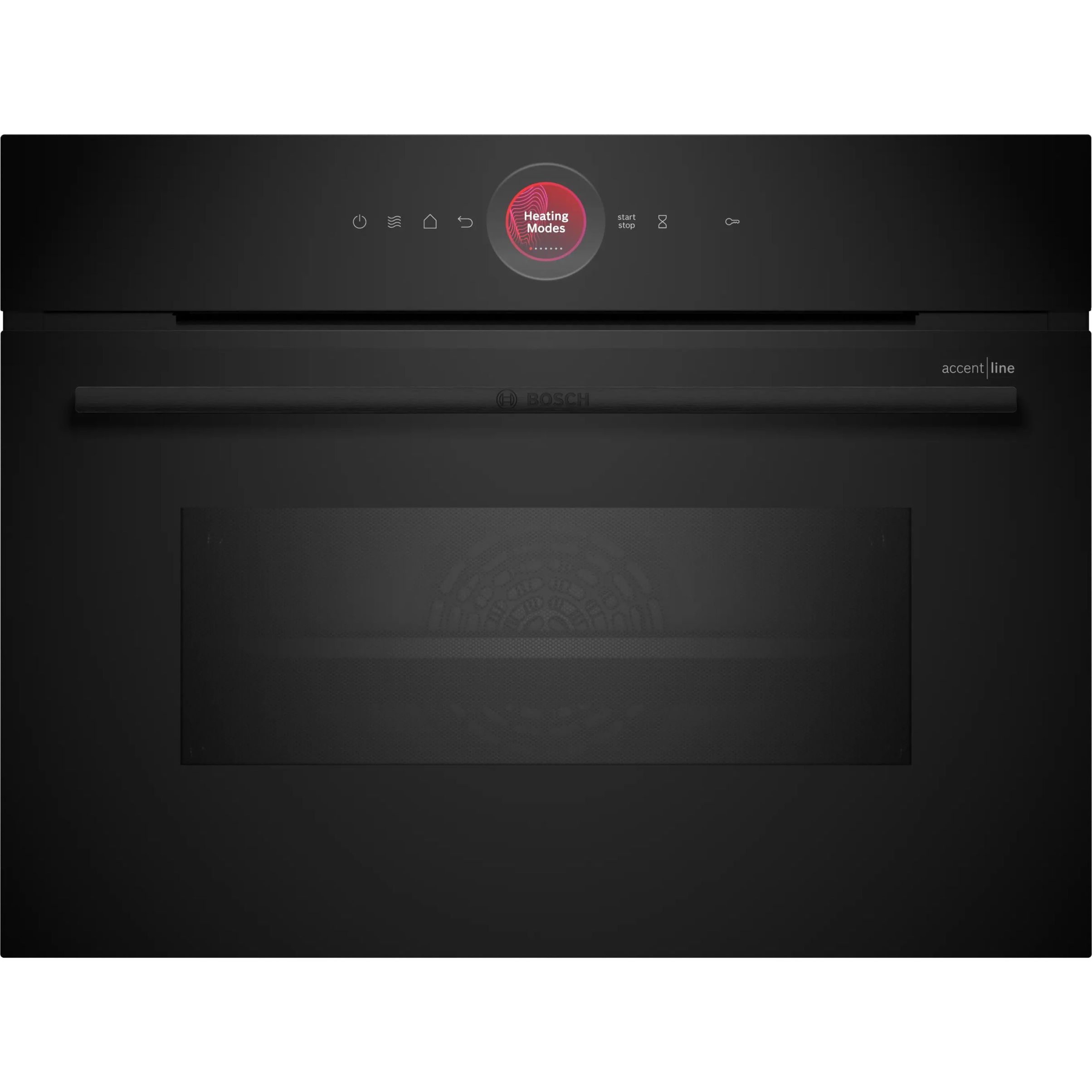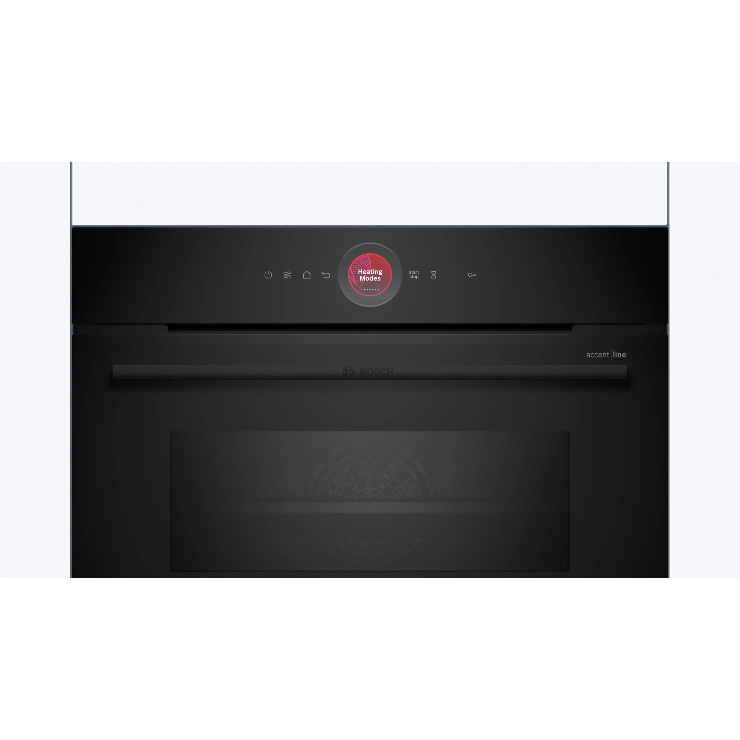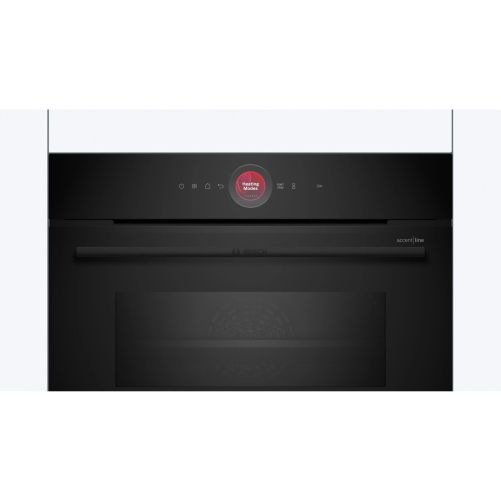 Cuptoarele Seria 8 din gama accent line sunt extrem de uşor de utilizat. Datorită finisajului lor complet negru, se potrivesc perfect cu orice mobilier de bucătărie, indiferent de stil. Iar inelul digital pentru comenzi este nu doar practic, ci şi conferă un plus de stil bucătăriei tale: acesta are un design minimalist atunci când este dezactivat şi se aprinde în culori calde atunci când este activat. De asemenea, navigarea în meniul cuptoarelor Seria 8 din gama accent line este extrem de simplă: poţi seta extrem de rapid şi uşor procesul de preparare şi temporizatorul direct pe afişajul tactil mare. Uşa cu geam fumuriu completează ingenios aspectul ultra-modern şi neted al cuptoarelor, iar tu poţi vedea în permanenţă preparatele din cuptor în timp ce acestea sunt gătite.