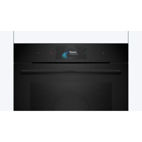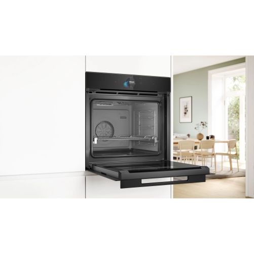 Cuptoarele Seria 8 din gama accent line sunt extrem de uşor de utilizat. Datorită finisajului lor complet negru, se potrivesc perfect cu orice mobilier de bucătărie, indiferent de stil. Iar inelul digital pentru comenzi este nu doar practic, ci şi conferă un plus de stil bucătăriei tale: acesta are un design minimalist atunci când este dezactivat şi se aprinde în culori calde atunci când este activat. De asemenea, navigarea în meniul cuptoarelor Seria 8 din gama accent line este extrem de simplă: poţi seta extrem de rapid şi uşor procesul de preparare şi temporizatorul direct pe afişajul tactil mare. Uşa cu geam fumuriu completează ingenios aspectul ultra-modern şi neted al cuptoarelor, iar tu poţi vedea în permanenţă preparatele din cuptor în timp ce acestea sunt gătite.